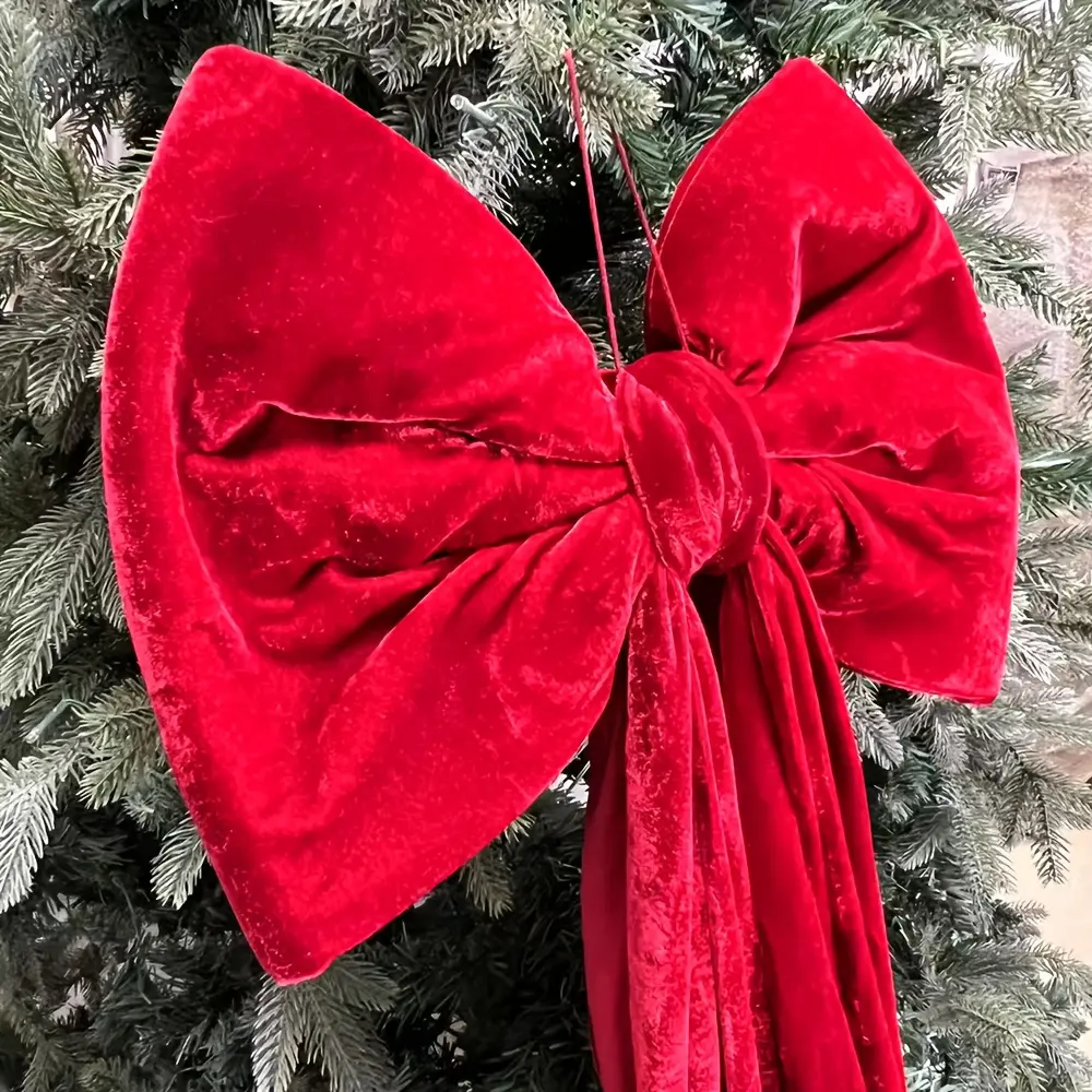 1 Valentine's Day Home Decor Bow Large Red Christmas Tree Top Velvet Bow Valentine's Day Ornament Christmas Wreath Bow for Family Gatherings, Weddings, Cars and Festive Decorations
