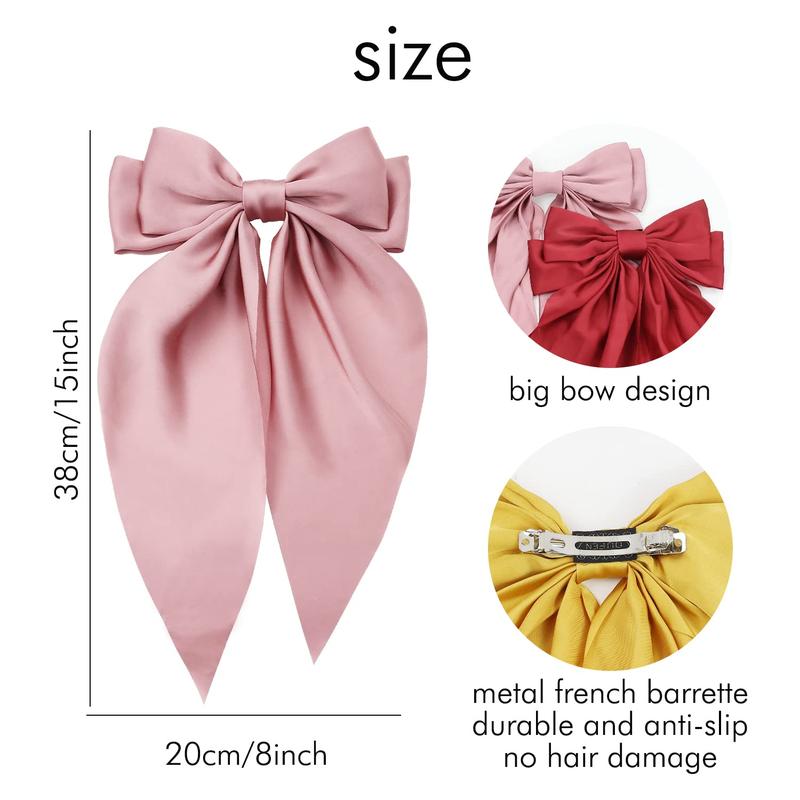 [Quality Material]: Well Workmanship with durable satin and alloy metal. these satin large bow hair clips look more pretty, fancy, beautiful, and exquisite. comfortable, soft for women or teens to wear.