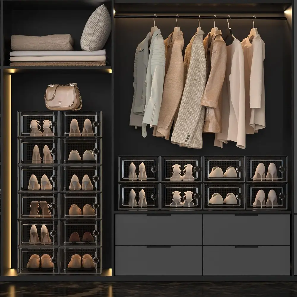 Large Shoe Box Organizer, Transparent Plastic Stackable, Replacement Shoe Rack, Sports Shoe Container, Toy Storage Box, Transparent