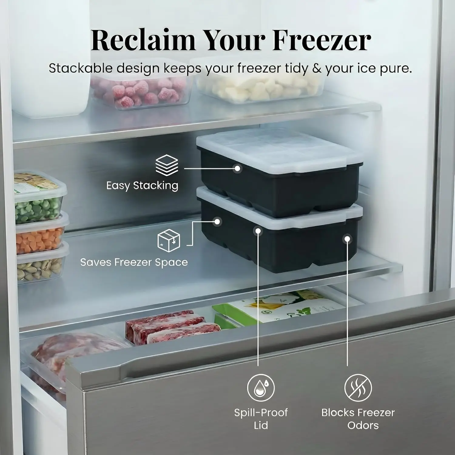 ·Stackable Freezer Mold: The tray is stackable, making it ideal for freezer storage. You get 2 big ice cubes per pack. 🧊