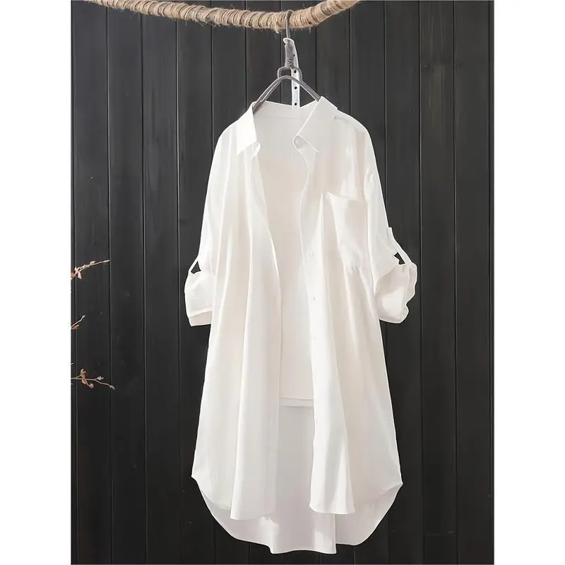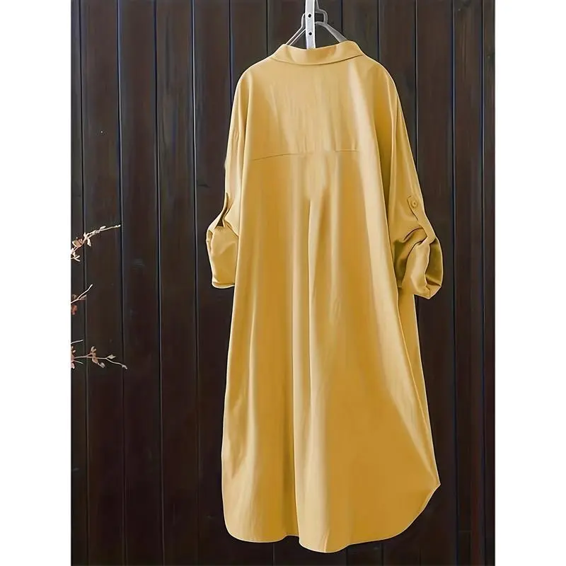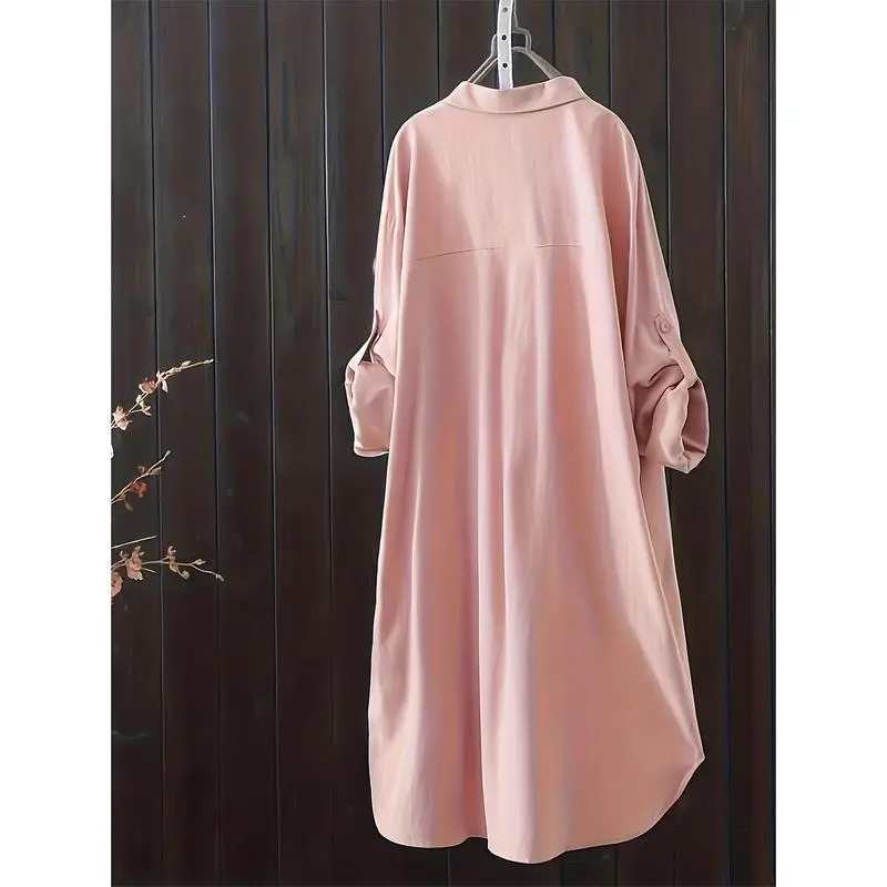 LargeSizeBasicTop,Women'sLargeSizeSolidColorRollCufflinksCollarShirtWomen'sClothingWomenswearBlouse