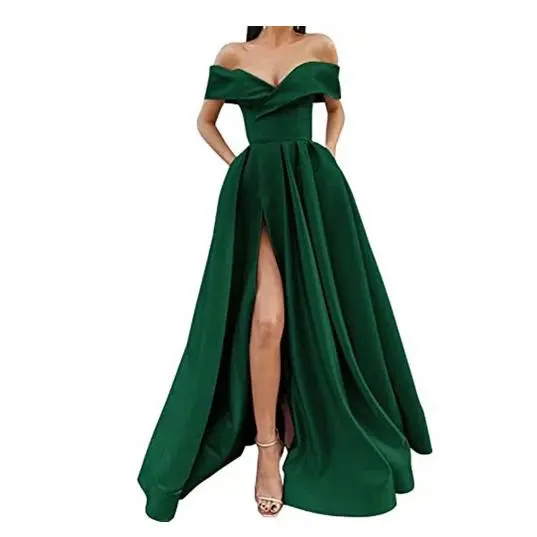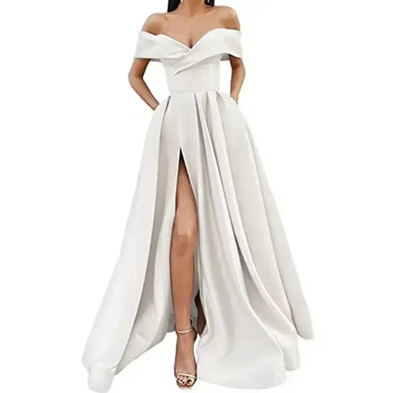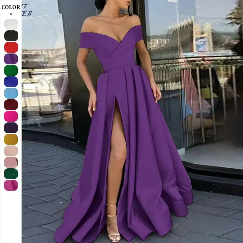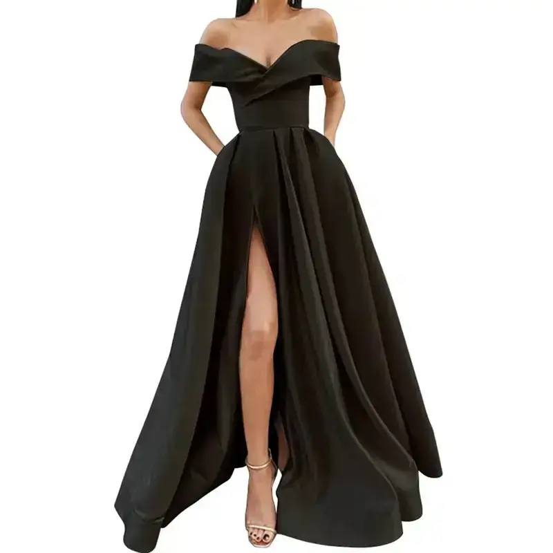Large size women's long skirt 2025 ladies summer banquet deep V neck slit sleeveless dress(Sheet)