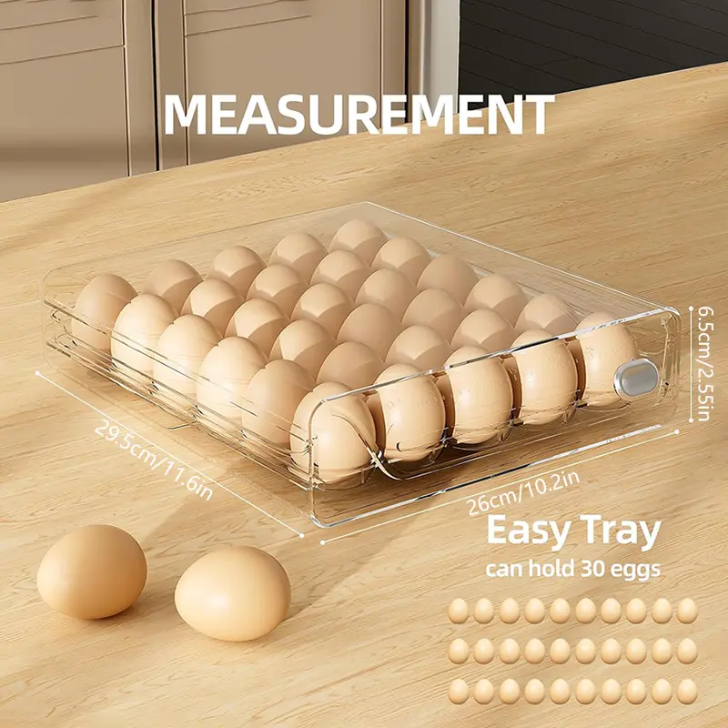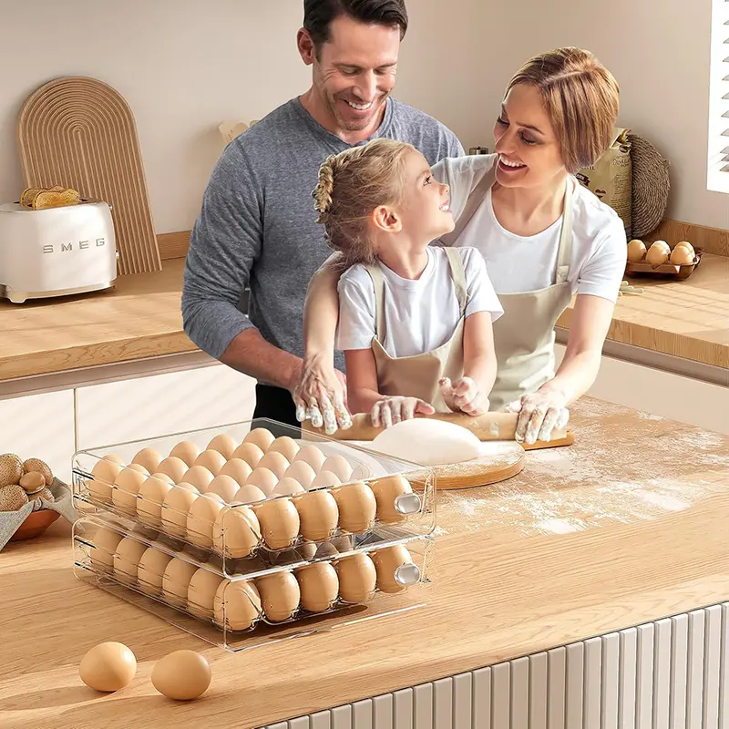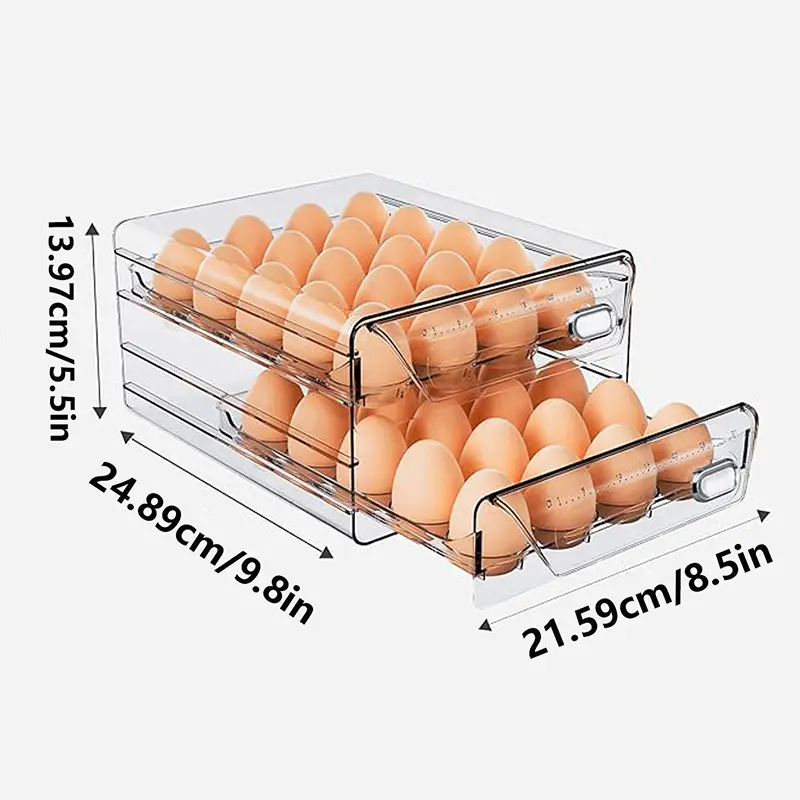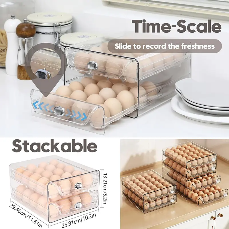 Large Stackable Egg Storage Box | 60-Egg Capacity with Freshness Timer | Transparent Anti-Roll Organizer for Fridge & Kitchen