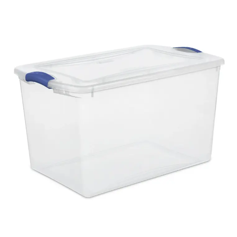 Large Storage Bin 2 Pack 66 Quart Clear Plastic Container with Latch Lid Blue Organizer Box