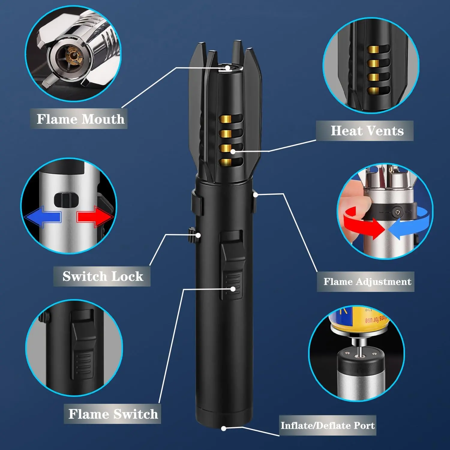 Large Torch Lighter, Windproof Butane Lighters with Flame Adjustable, Refillable, Jet Flame, Flame Switch Lock, Cool Lighter for Men.(Gas Not Include)