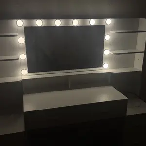 ·Large Vanity Desk with LED Lighted Mirror: This 54.3'' Vanity is equipped with an extra-large lighted mirror. With this large lighted mirror, you can see every detail from all angles. The beauty shining bulbs with 3 lighting modes-cool white, natural light, warm yellow, adjustable brightness, can fit all your needs, whether in daytime or nighttime.