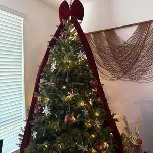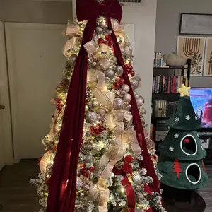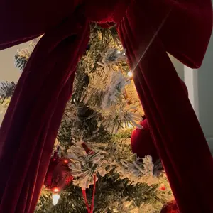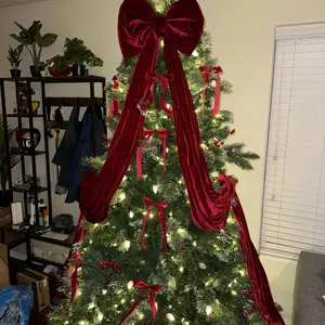 This bow is soooo soft and luxurious! It makes my tree look sooooo gorgeous!!! I will say it comes off a little more red than a true deep burgundy so I was able to buy red ribbons that compliment the bow. I would 100% get this again in other colors , it is such a statement piece!