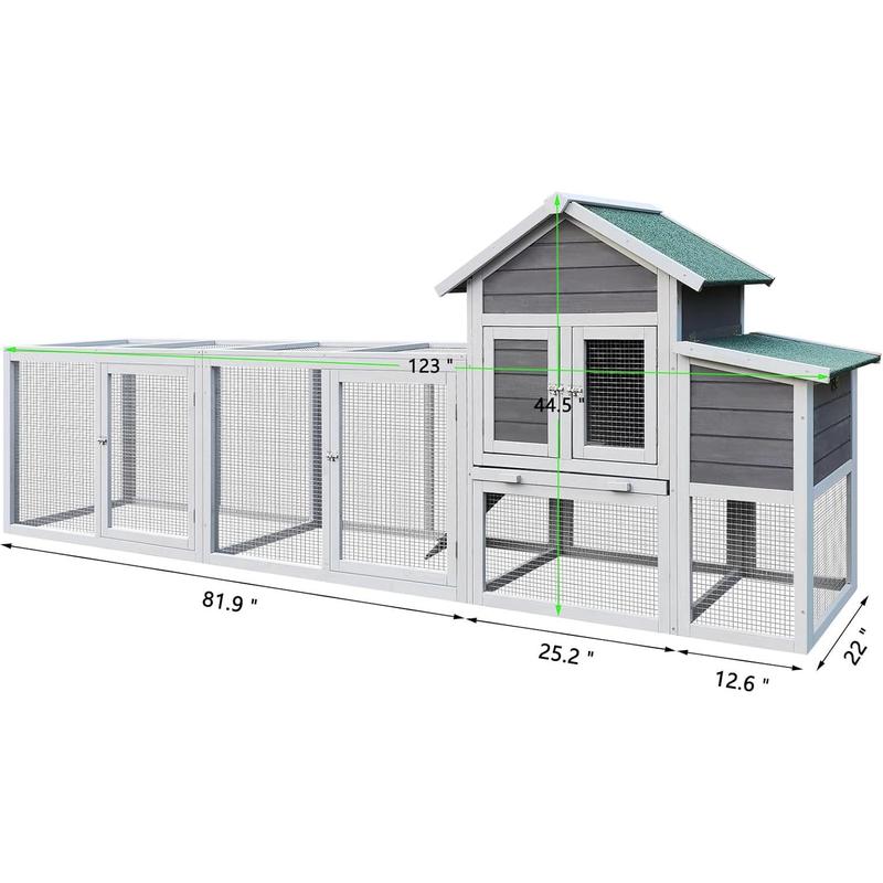 ·Spacious Design: This 122" chicken coop provides ample space for 3-4 chickens, depending on their breed and size, allowing them to grow comfortably in a secure environment.