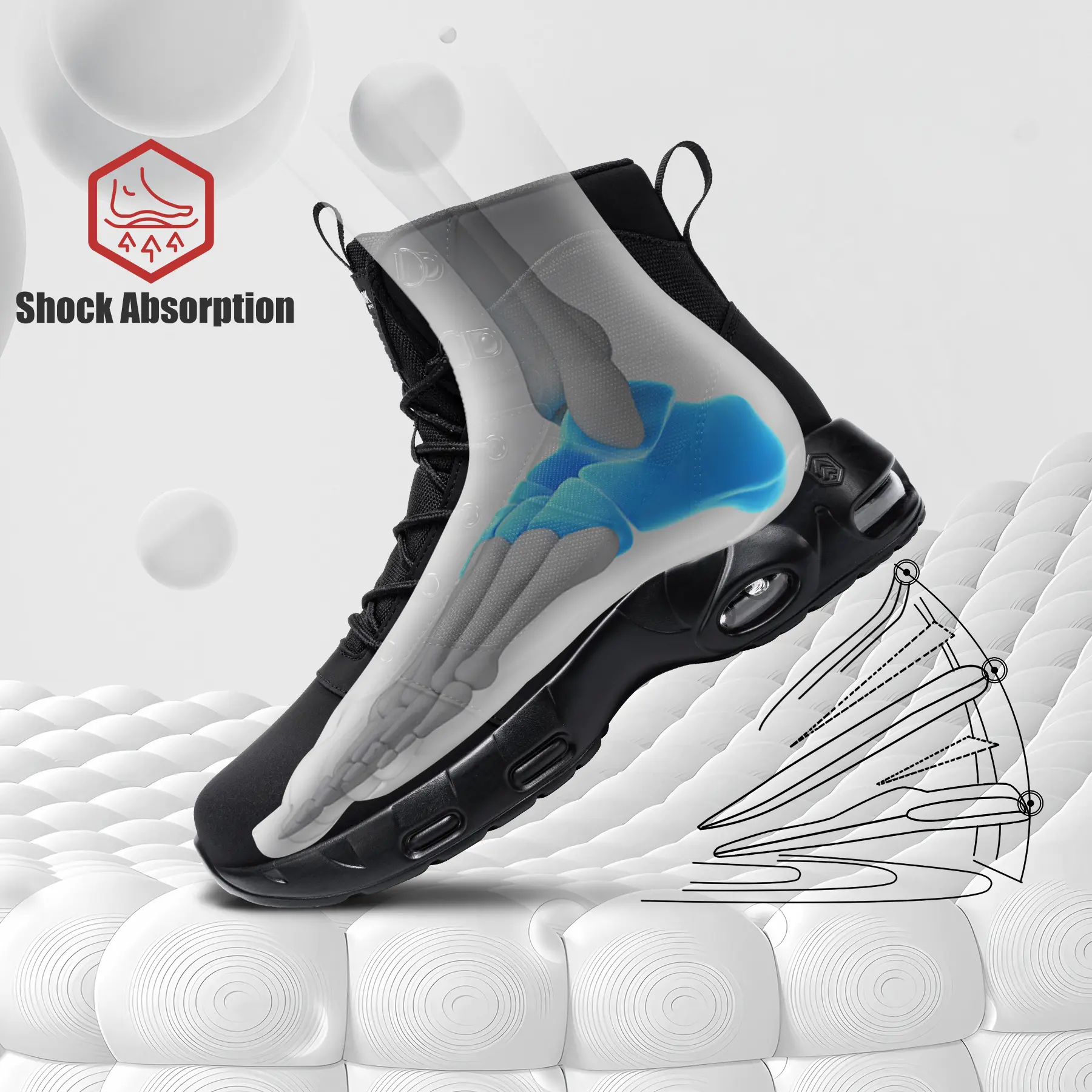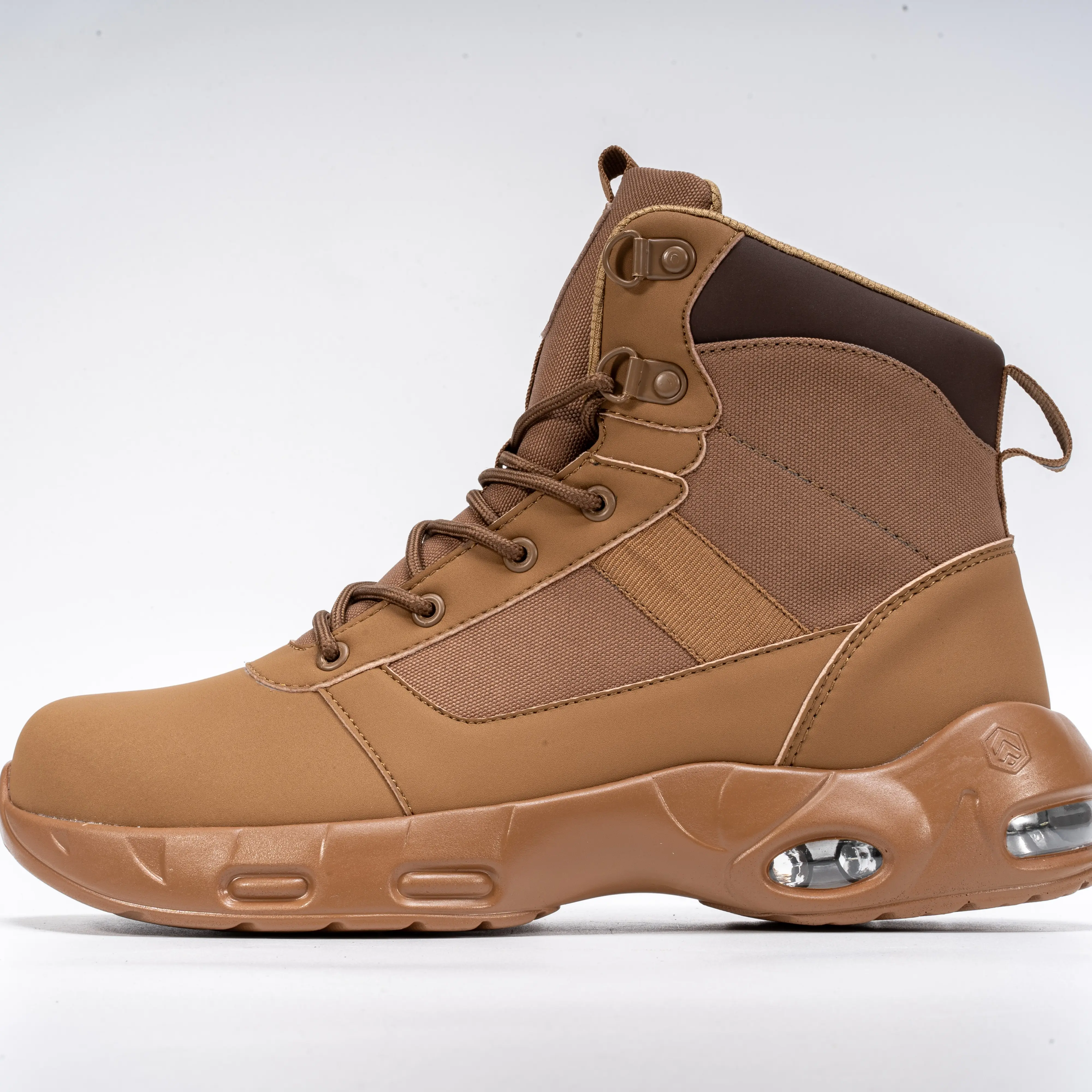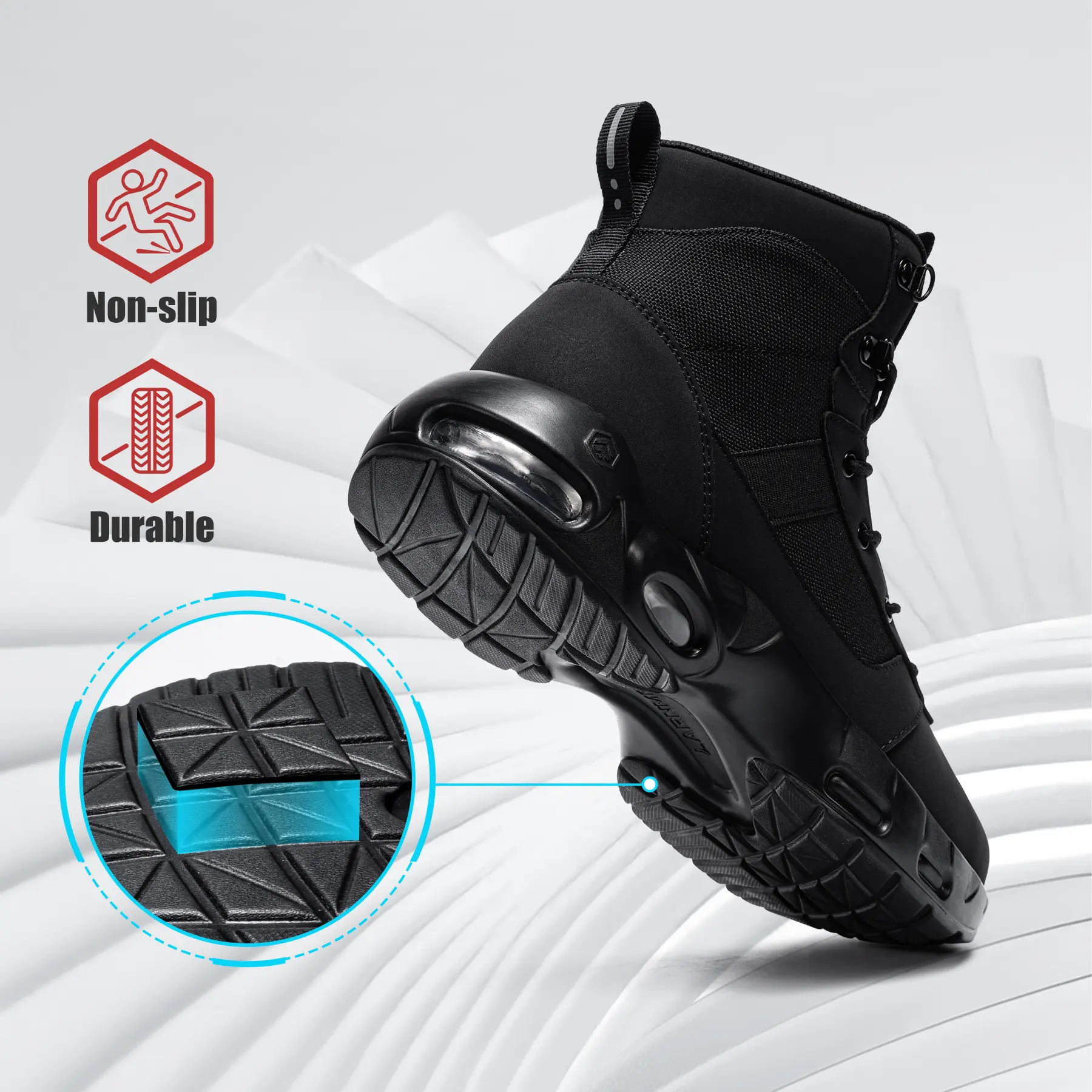 The upper of this high-top shoe is made of synthetic leather, blocking moisture penetration and keeping your feet dry. It is ideal for outdoor or damp environments.
