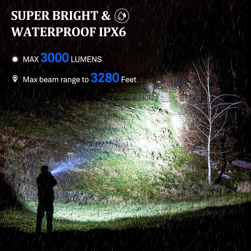 【Water Resistance】: This flashlight is designed to be water-resistant, so it can withstand a bit of rain without any issues, making it perfect for outdoor use.