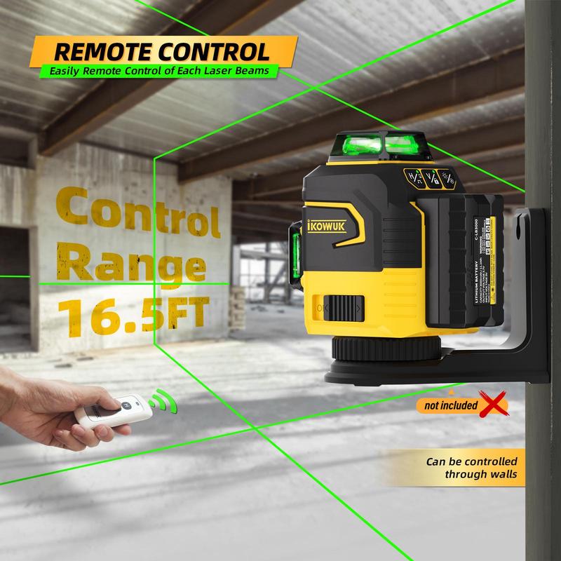 ·Remote Control: The laser level is equipped with a remote control function, you can control the level line from a distance without returning to the operation, improving work efficiency; The remote control distance can reach 16ft, it can be controlled even through walls