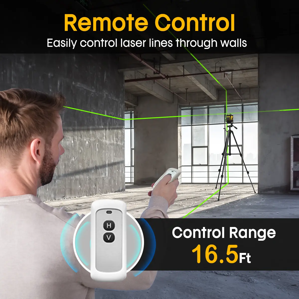 ·【Remote Control】The iKOVWUK 12-lines laser level is equipped with a remote control function, allowing for quick and easy adjustments to the laser line without needing to return to the machine during work. The remote control range can reach up to 16ft, it can be controlled even through walls.