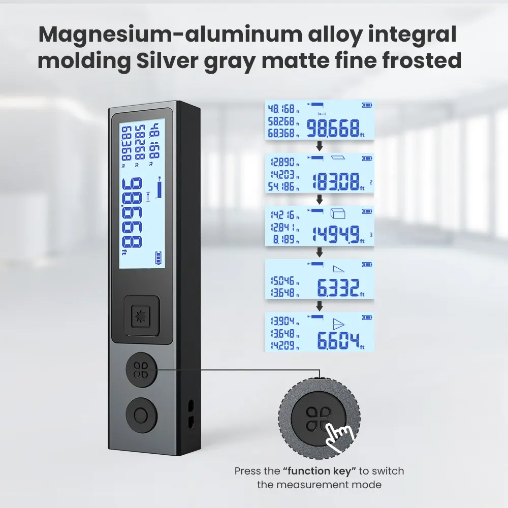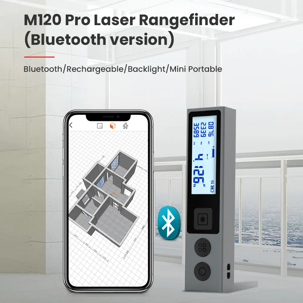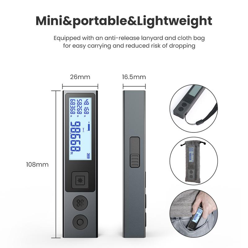 ·【Diversified Measures Modes】M120 laser measurement tool, A miniature laser distance measure that tells distance, area, volume, computes length based on Pythagorean Theorem.Widely used in indoor decoration, DIY design, construction,logistics,warehouses,etc.
