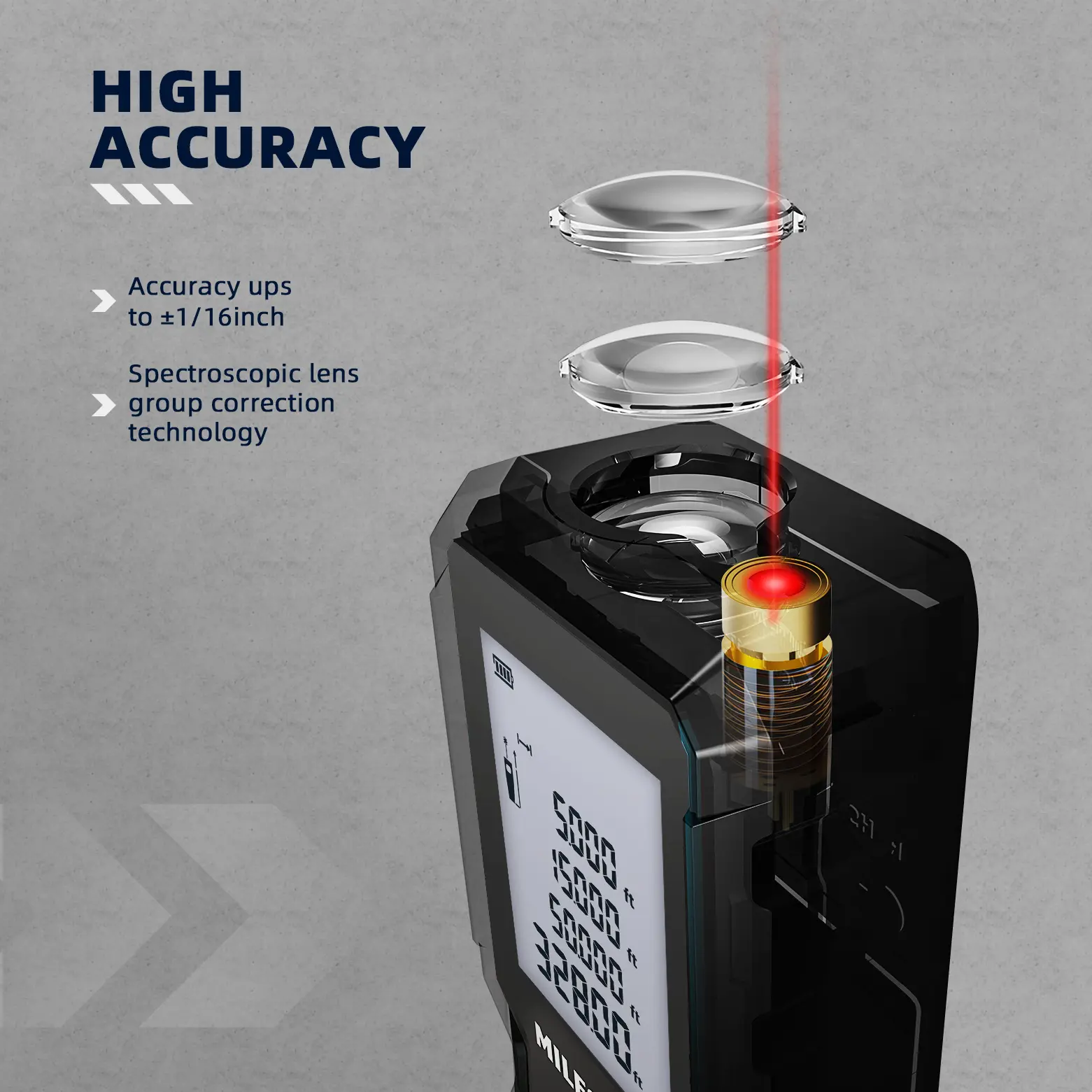 Accurate and Reliable Work- Plumb and Level Vials: Ensures measurements are taken on the level.- PowerBurst Technology: Delivers greater precision with ±1/16 inch accuracy.- Measurement Range: Measures up to 165 feet.- Fast Measurement: Measures in 0.5 seconds.