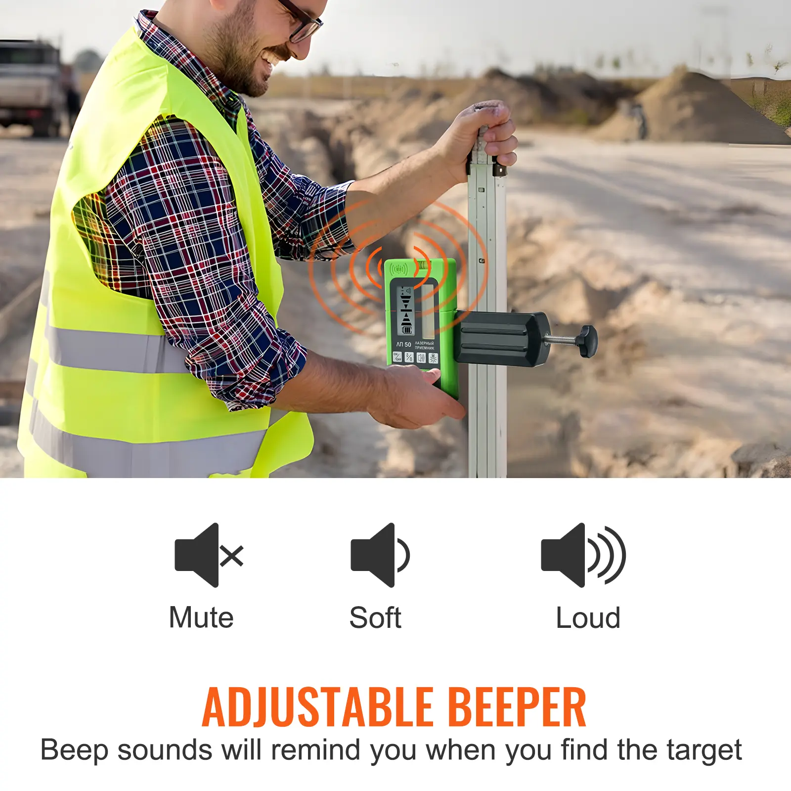 • Precise Beeper Signals: The level laser detector's adjustable beeper provides audible feedback, assisting in quickly identifying the target location and saving time and effort during tasks that require precise alignment or positioning. Powered by 1.5V batteries, the laser receiver offers an impressive working time of about 20 hours.