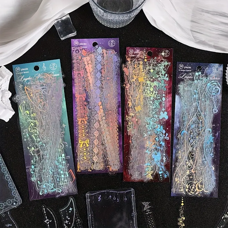 I did only get the purple color lace pattern, silver but holo color. Stickers are plastic, will use them for scrapbooking.