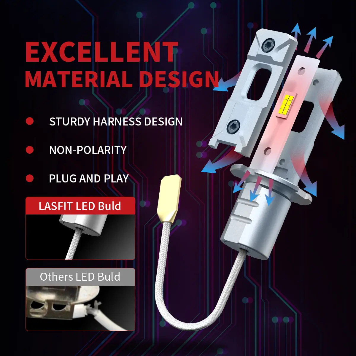 Noiseless: Lasfit L1plus series led bulbs, without fans at the bottom, provide you a quiet driving environment and do not affect the heat dissipation of the lights.