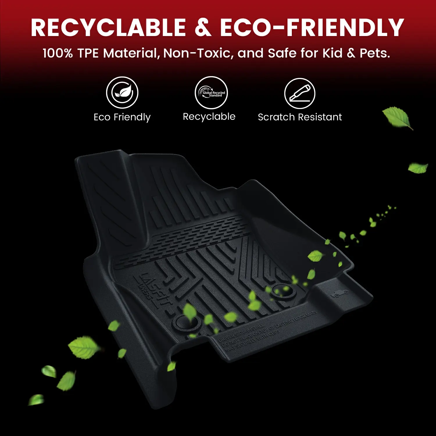 4th Gen Tacoma floor mats from Lasfit are crafted from 100% brand-new Thermoplastic Elastomer (TPE), offering exceptional elasticity and wear resistance. They provide a comfortable feel underfoot and prevent accidental skidding, even when wet. The unique groove design increases friction, ensuring excellent durability even with prolonged use. Therefore, Lasfit floor mats are both durable and environmentally friendly.