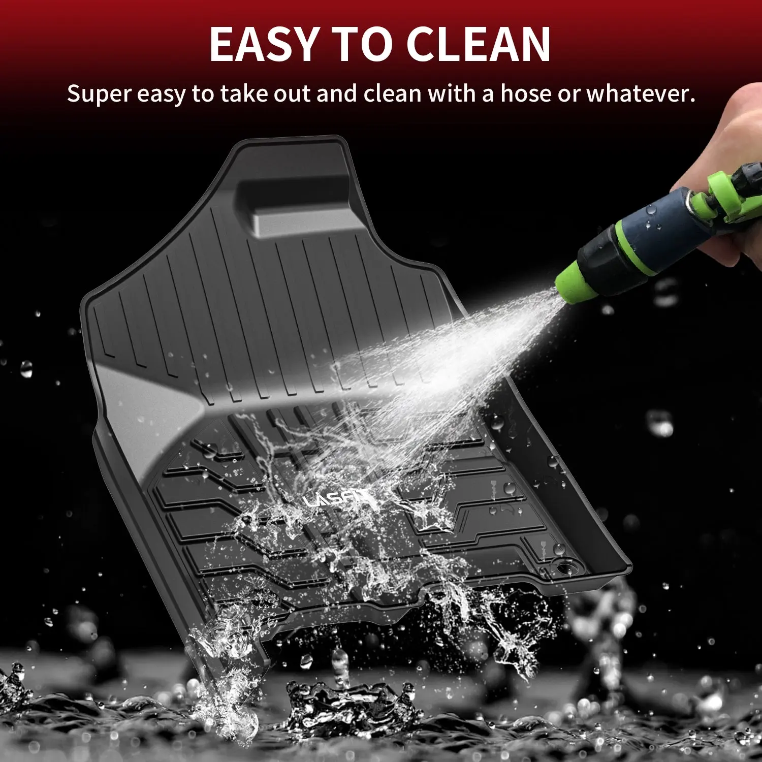 Our all-weather floor mats are designed to withstand any weather condition. They are stain-resistant, waterproof, and anti-slip, making them easy to clean and maintain. Built from high-quality materials, these liners won't break down under extreme weather or daily wear like rain, slush, snow, or mud. The durable edges resist slouching and won't deform in winter. After cleaning, the mats will look brand new, maintaining their effectiveness and appearance.
