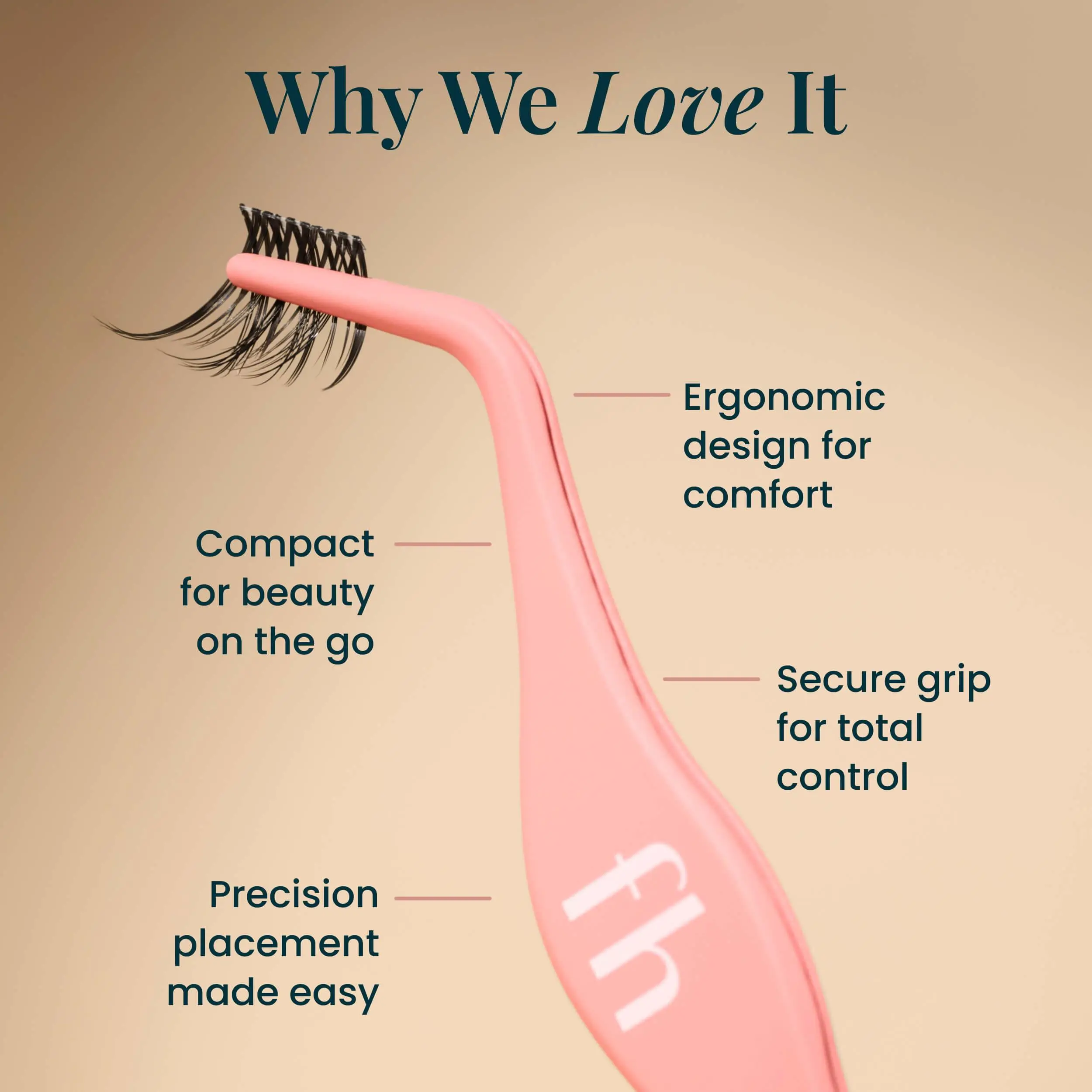 easy to hold lashes in place to apply them. also not uncomfortable for my hand to hold at all! the angle helps for different parts of the eye.