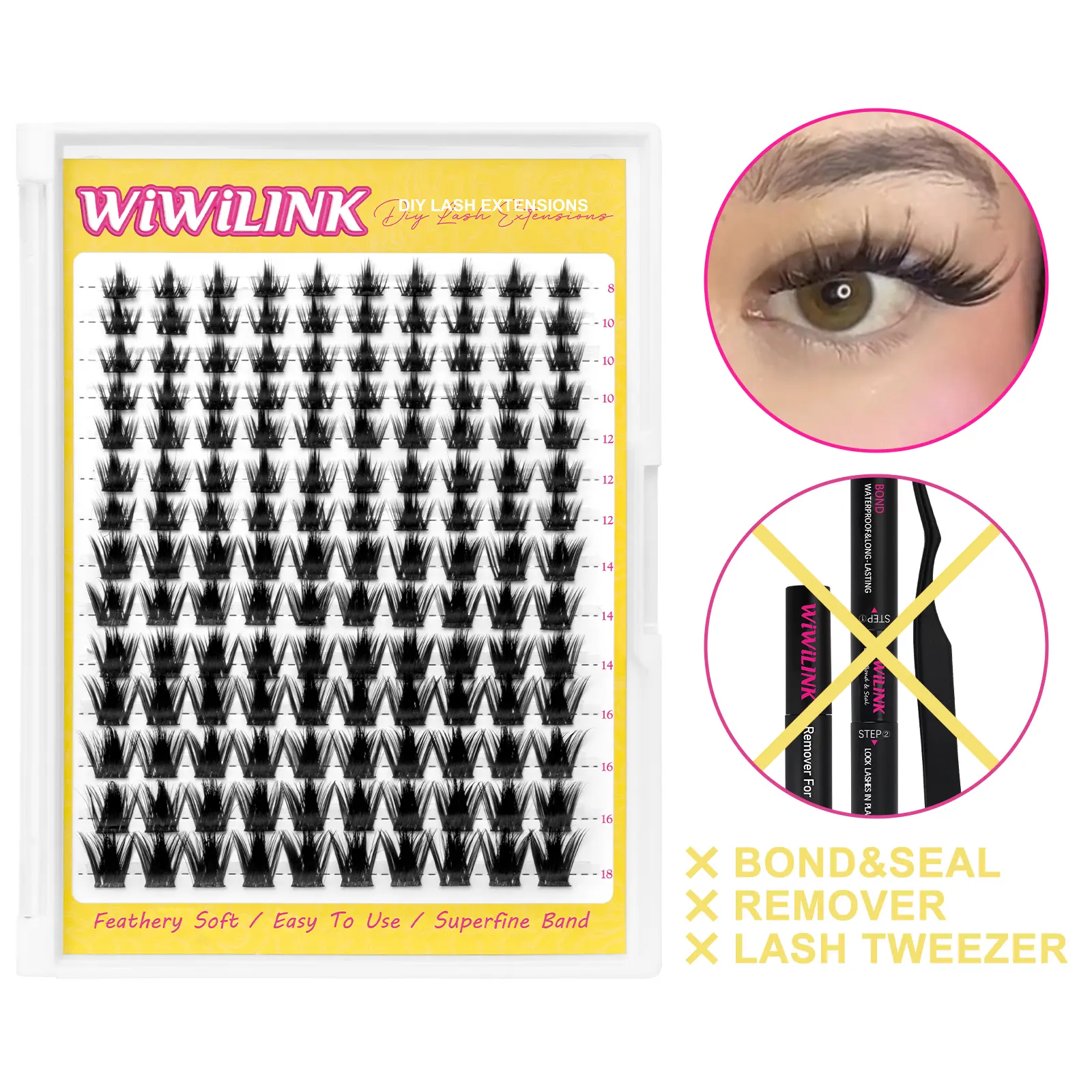 sealant doesn’t seal shiz, u blink n ur eye gets glued closed. i used some castor oil instead. Half the pack is the same superrr long lash (pictured) barely any is normal length ones. also only one row for the tiny, so if u like doing ur bottom row, forget it. might buy again tho 😔. they’re cute😭