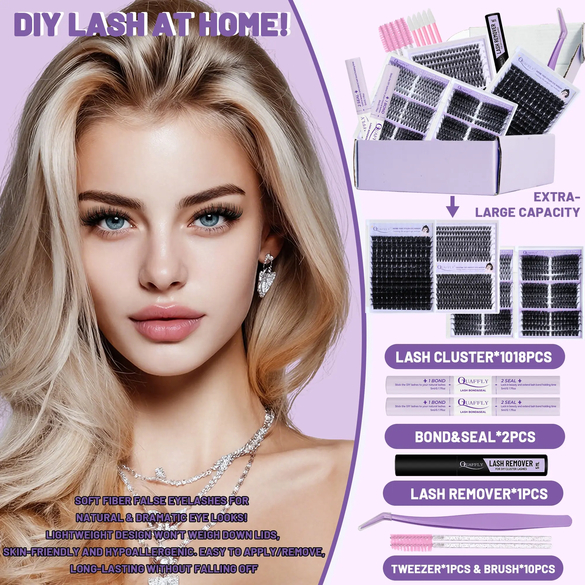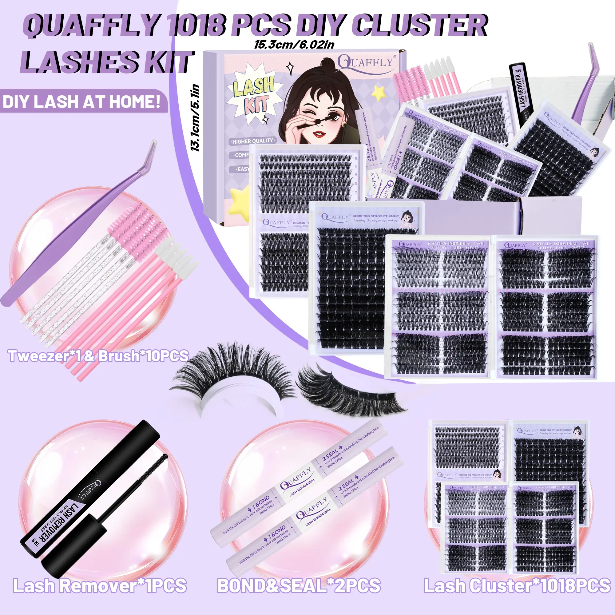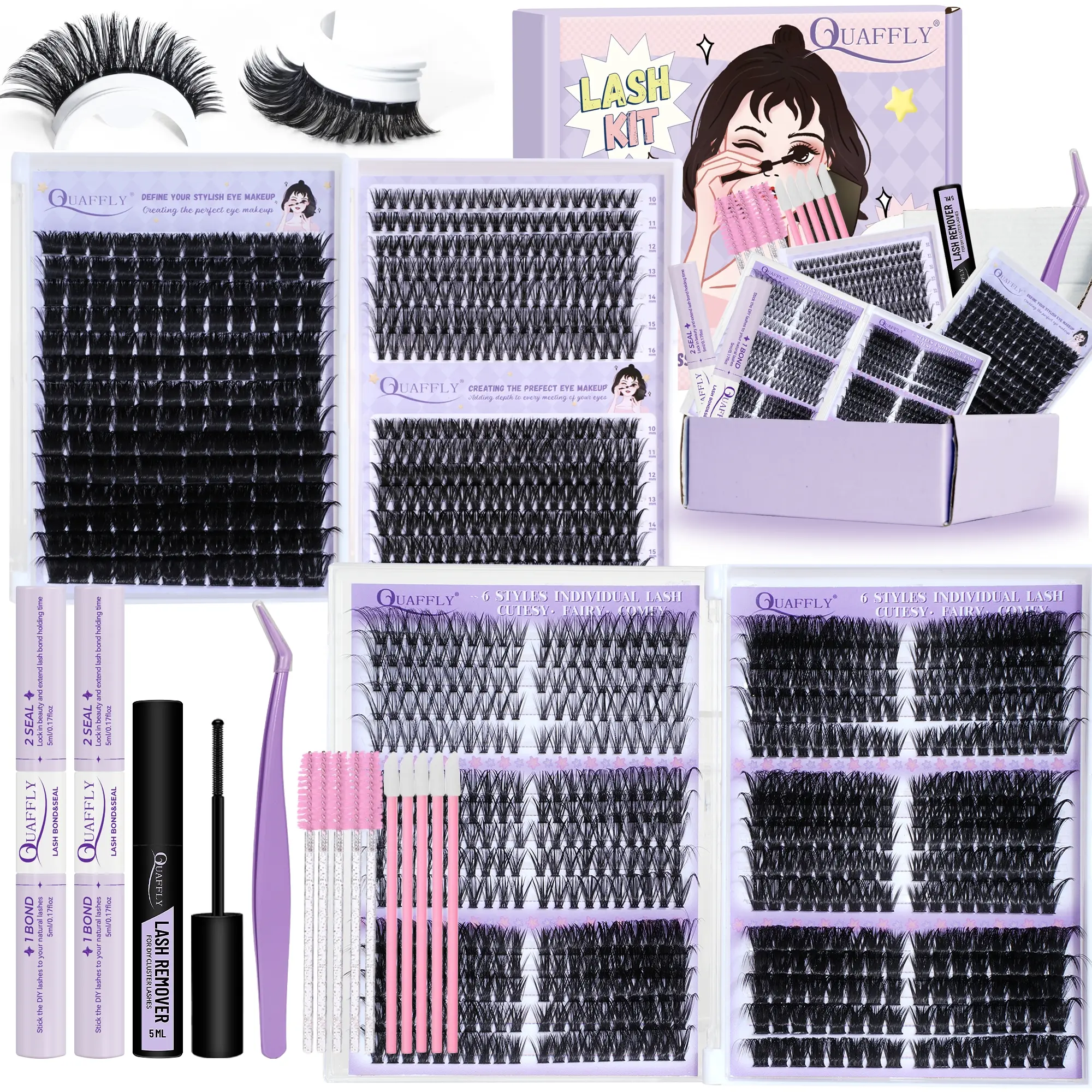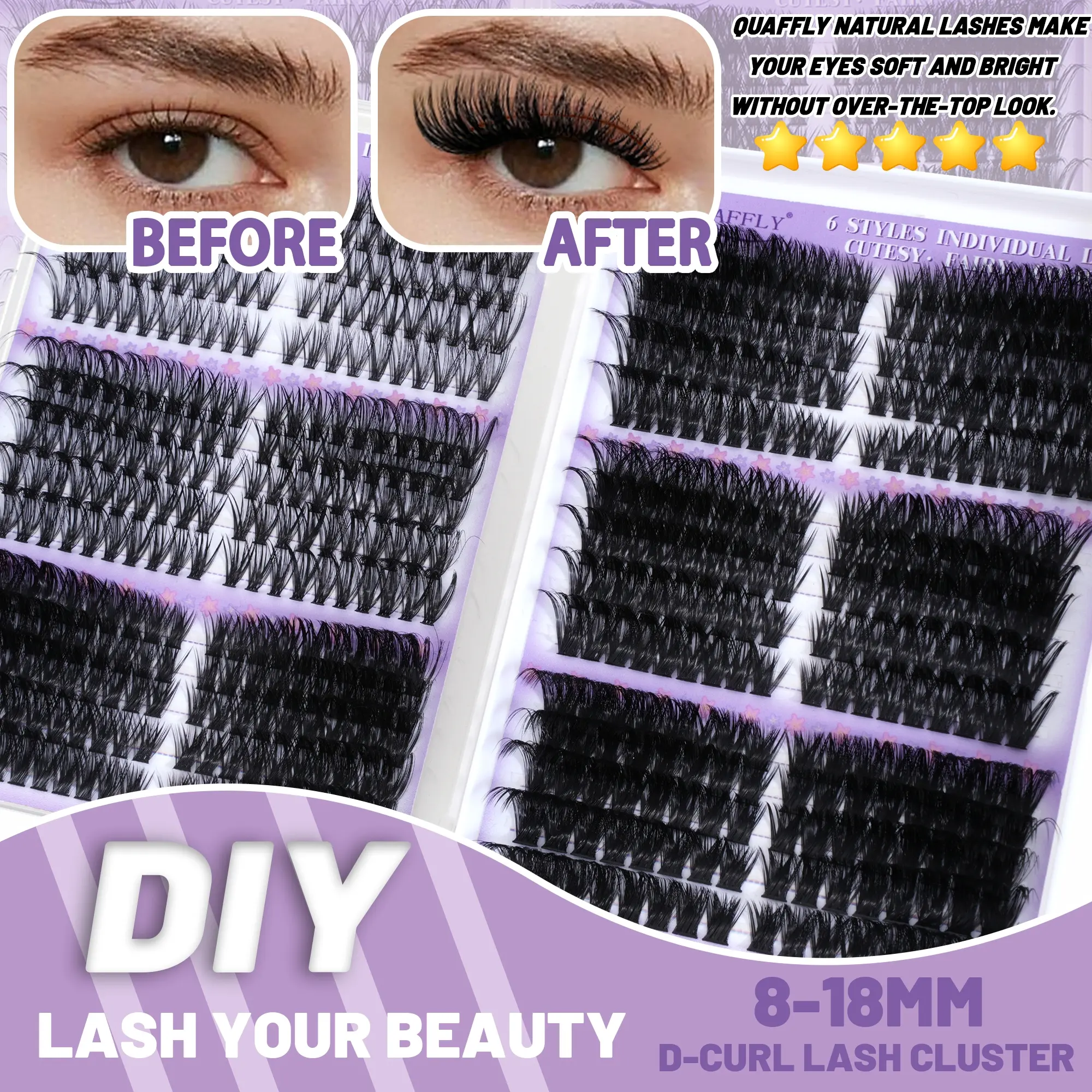 Quaffly Lash Clusters Kit 1018 Pcs, Eyelashes Clusters Extensions Kit, 8-18mm Individual Lashes, Fluffy Volume, DIY Lash Extensions #maybellinelashsensationalmascara #maybellinelifterglaze #lashset #affordablelashes #waterprooflashclusters #lashifylashes #diyeyelashset #lashartistsupplies #lashvendor #brownlashclusters