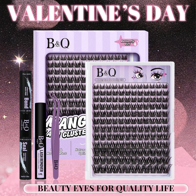 5. B&Q Butterfly Girl Kit l Manga Series Individual Lash Clusters, CC-Curl, Bond & Seal(8-18MIX) for DIY Eyelashes Extension Kit Spiky Anime Lashes Valentine Gif
