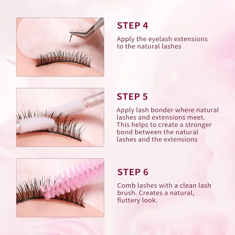 ·Tips: Blow dry the lash extensions for 2-3 minutes after application. Apply 2-3 drops of Super Bonder onto a micro brush, spread lightly on the glued areas of lashes. Air dry for 2-3 minutes before next process.