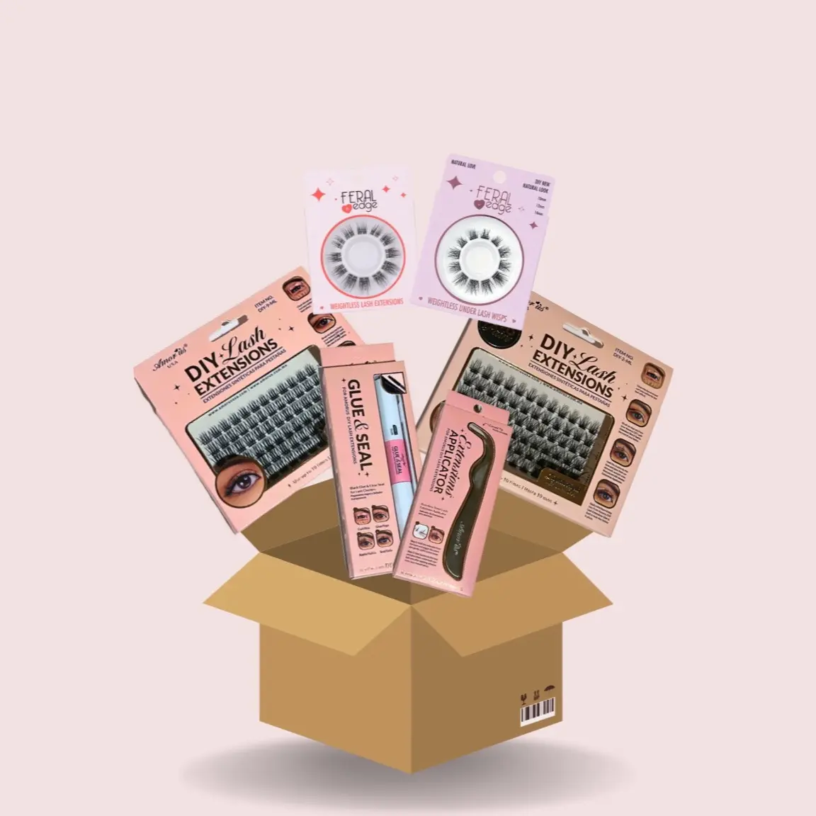 Elevate your look with our DIY Lash Extensions Bundle False eyelashes set . Each bundle includes 2-4 packs of gorgeous false lash extensions that will give you the perfect flutter for any occasion. each bundle includes lash bond and seal and applicator.
