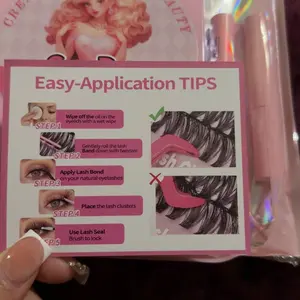 i’m absolutely in LOVE these lash clusters! i had to get myself 2 sets. super fast delivery , packaged with love. Came with a lash bond , lash glue, lash remover and a spoolie! these lashes are lightweight and they blend soo easily with my natural lashes. i DEFINITELY recommend. Thank you ClauDine!