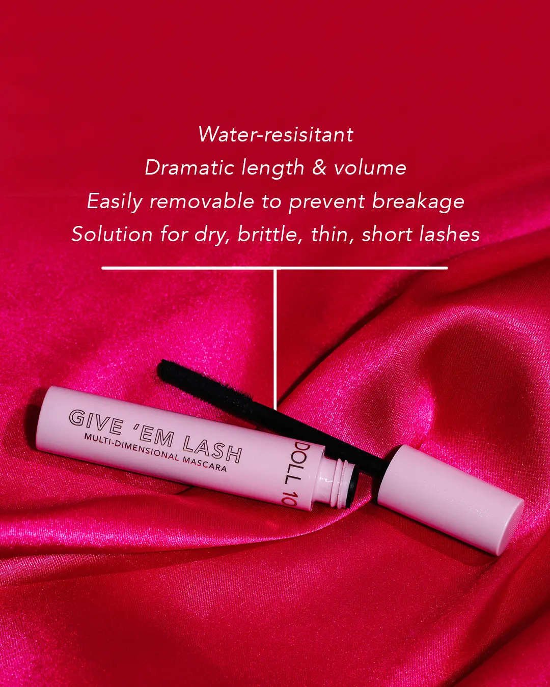 Experience the perfect blend of beauty and functionality with GIVE 'EM Lash Lengthening and Volumizing Mascara.