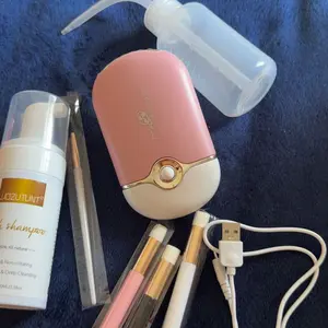 This lash kit comes with everything you need for lash care / removal ! The fan does die fast but it comes with a charger . This is a starter kit meaning the lash shampoo can is smaller!