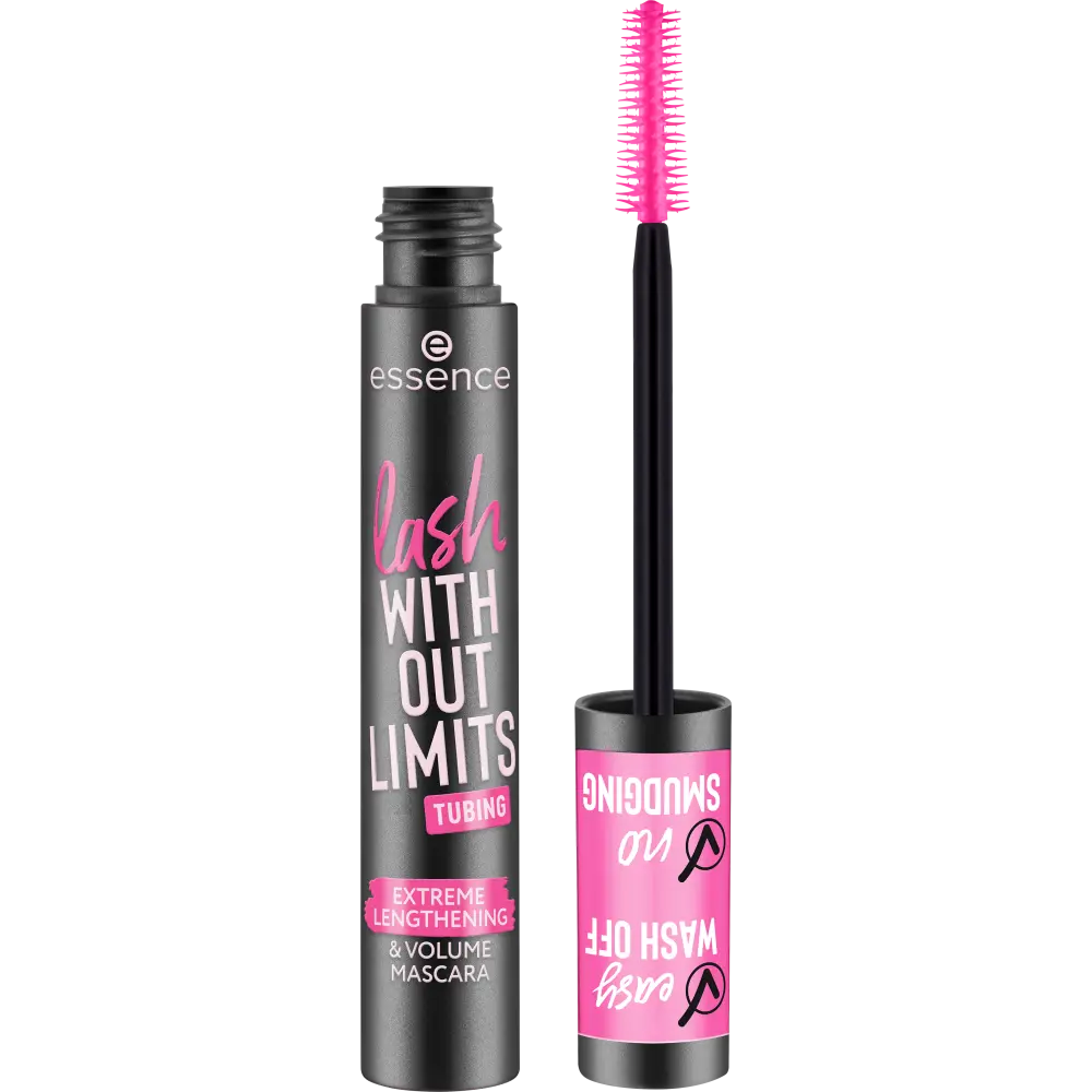 Get extreme length and volume with essence Lash Without Limits Tubing Mascara. This innovative tubing formula wraps lashes in tiny "tubes" for dramatic definition that wonât smudge or flake. The elastomer brush grabs all lashes for an eye-opening effect.