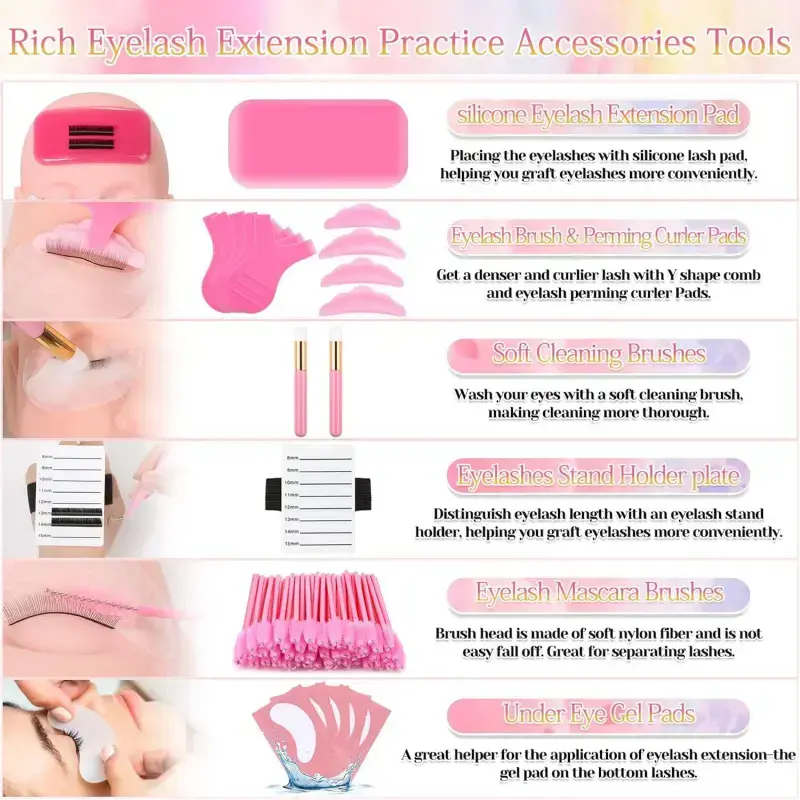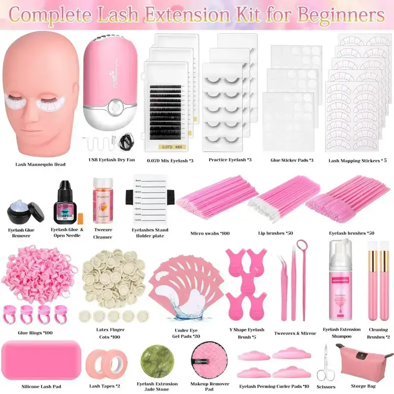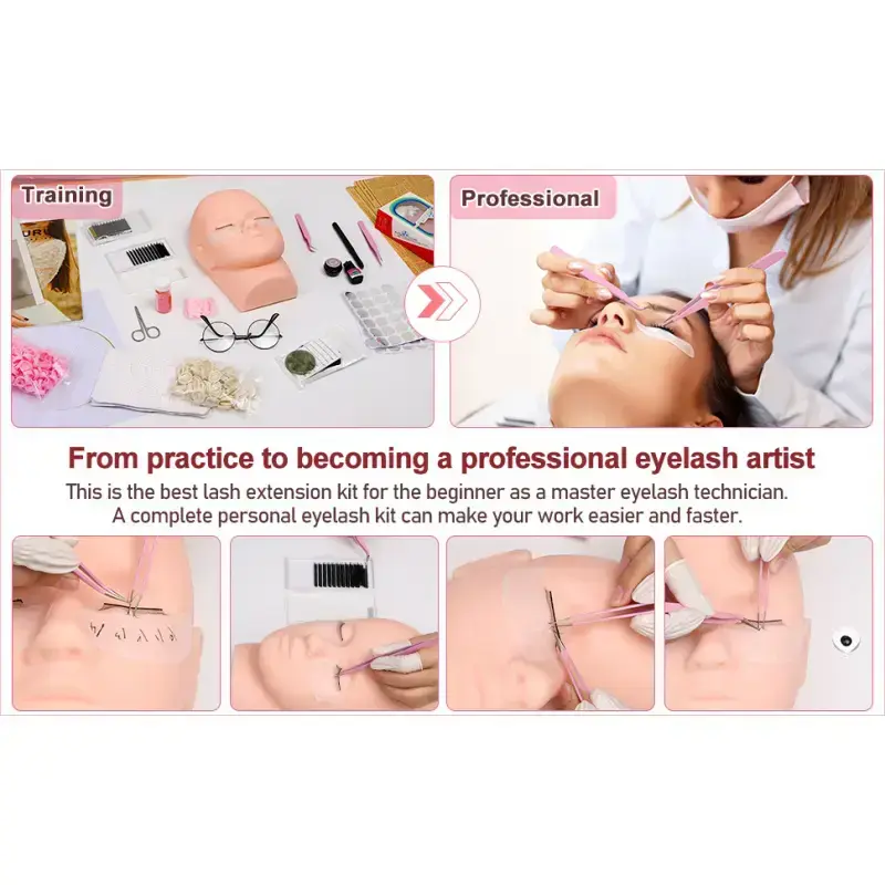 5. Lashes Kit for Eyelash Extension Beginners 470PCS Professional Lash Mannequin Head Practice Kit with Everything Lash Glue Lash Shampoo Lash Fan, Lash Extension Supplies for Practice