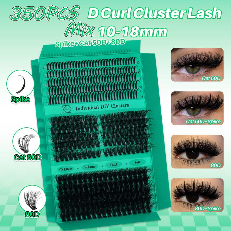 1450/640/460/350 PCS D Curl Lash Clusters Kit, 11 Styles Cat Volume Spikes and 3D Effect Lashes Eyelash Extensions with Bond and Seal Remover Applicator Headband and Wristband, Suitbale for Easy DIY Makeup at Home
