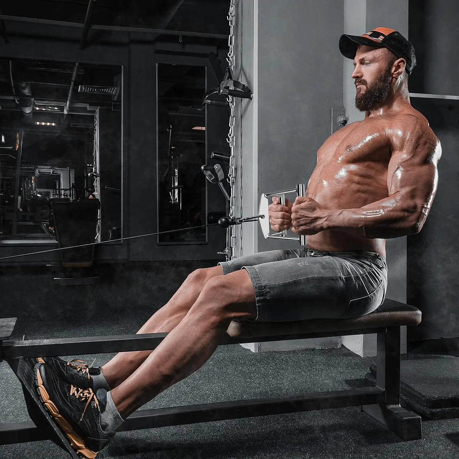 💪【MULTI WORKOUTS】-Tricep pull down attachment for building stronger triceps and grip strength, assisting around elbows, wrists, , abs and with different compound pushing exercises: triceps pushdowns, seated rows, straight bar pressdown, seated upright rows, for both workout at and gym.