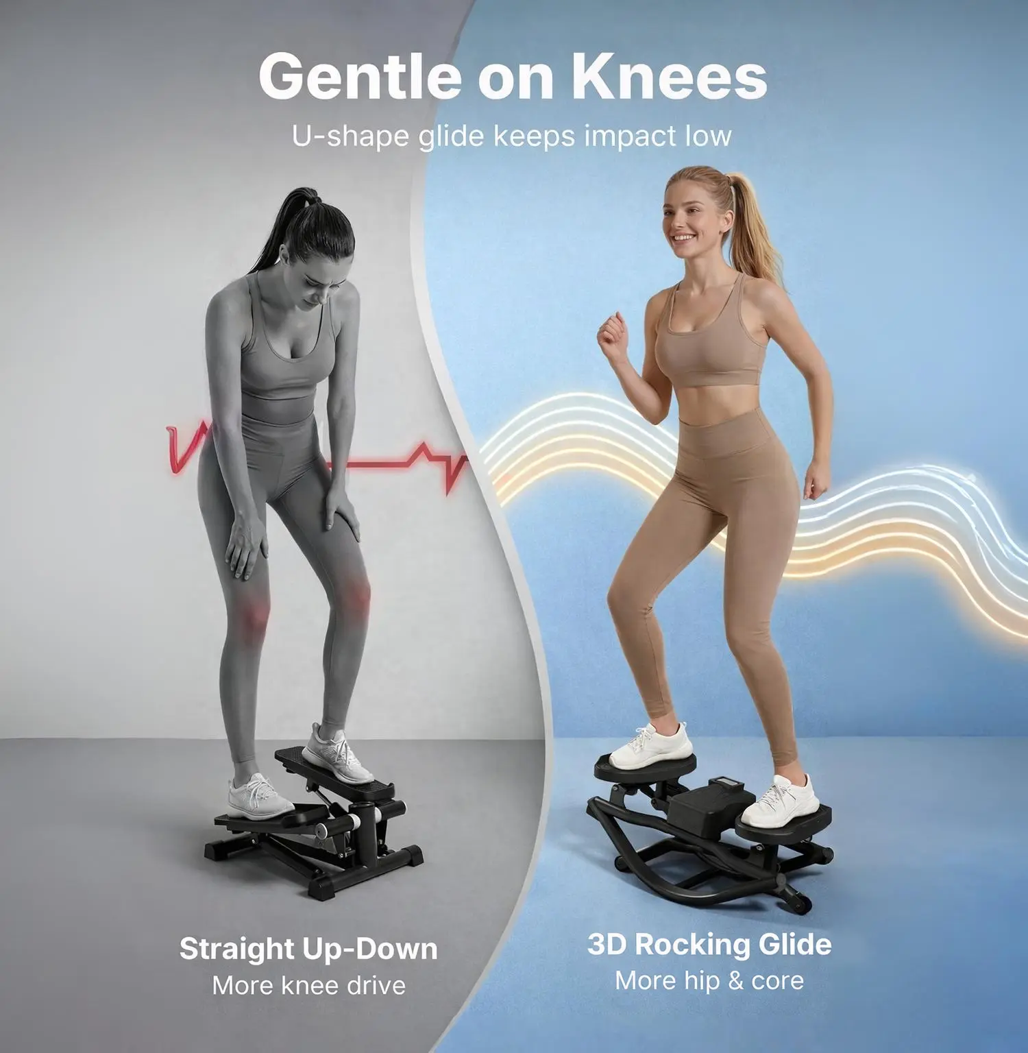 ·Swinging from side to side: Unlike traditional up-and-down swing mini steppers, this swing stepper activates the thighs, glutes, and core muscles while reducing stress on the knees and joints.