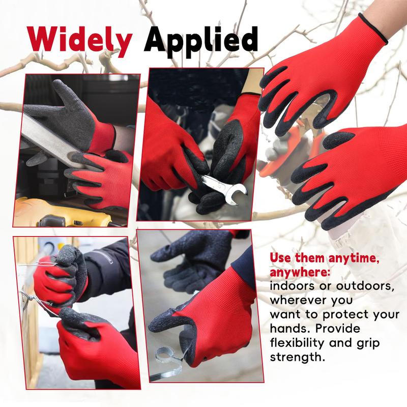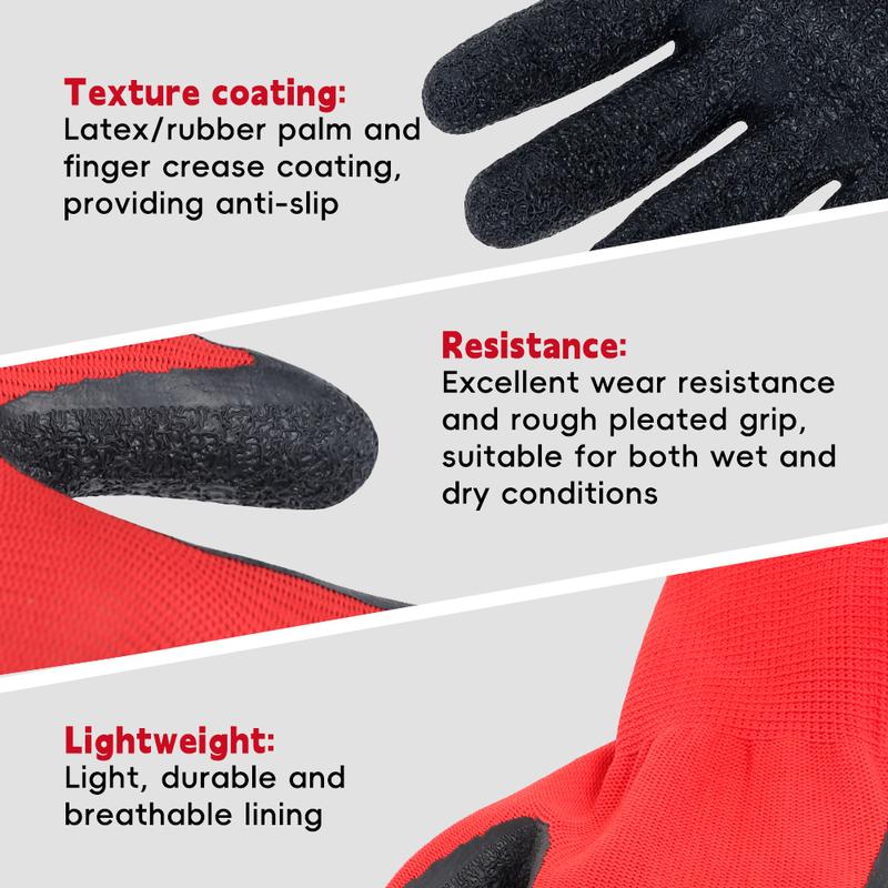 12 Pair Crinkle Latex Rubber Hand Coated Safety Work Gloves for Men Women General Multi Use Construction Warehouse Gardening Assembly