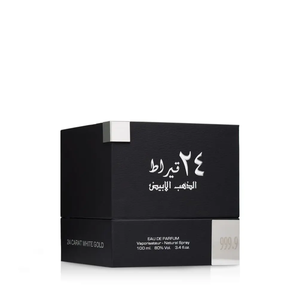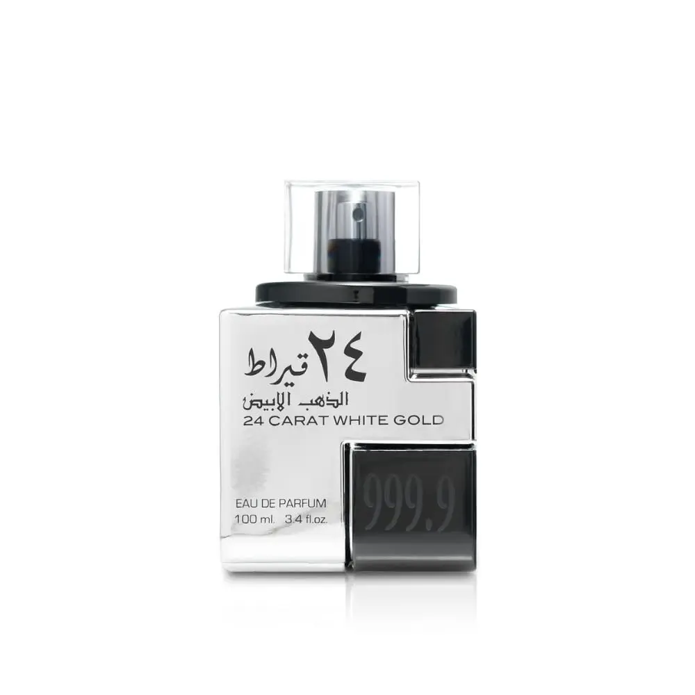 Indulge in the luxurious essence of Lattafa 24 Carat White Gold for Men and elevate your fragrance game with this captivating scent.