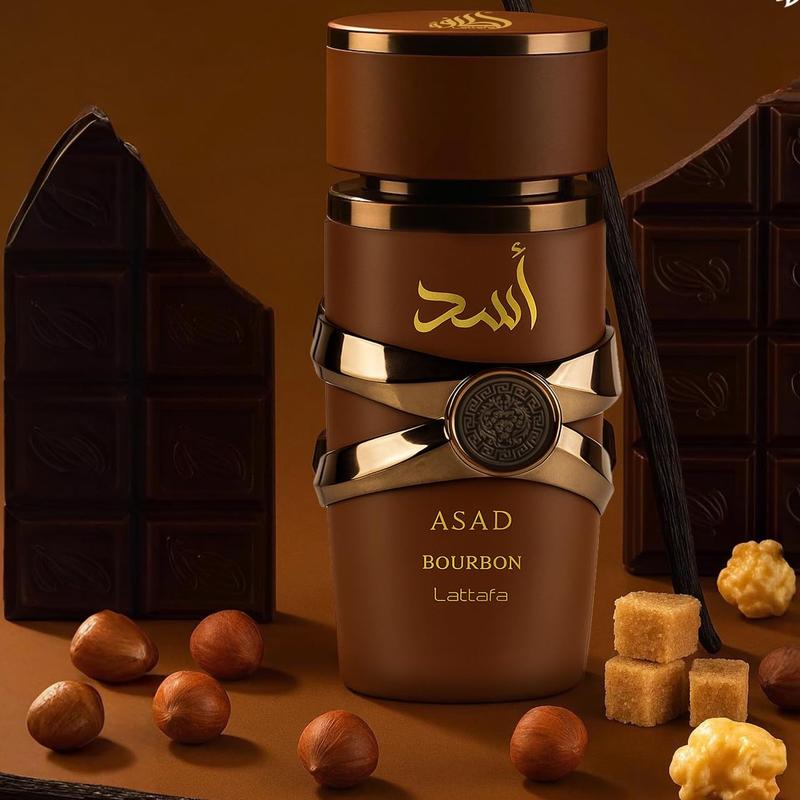Lattafa Asad Bourbon Eau de Parfum combines spicy, fruity, and gourmand notes for a refined yet daring scent. Perfect for evenings, cooler weather, or any moment you want to leave a memorable impression. This 3.4 Ounce (100ml) bottle offers long-lasting strength and rich projection.