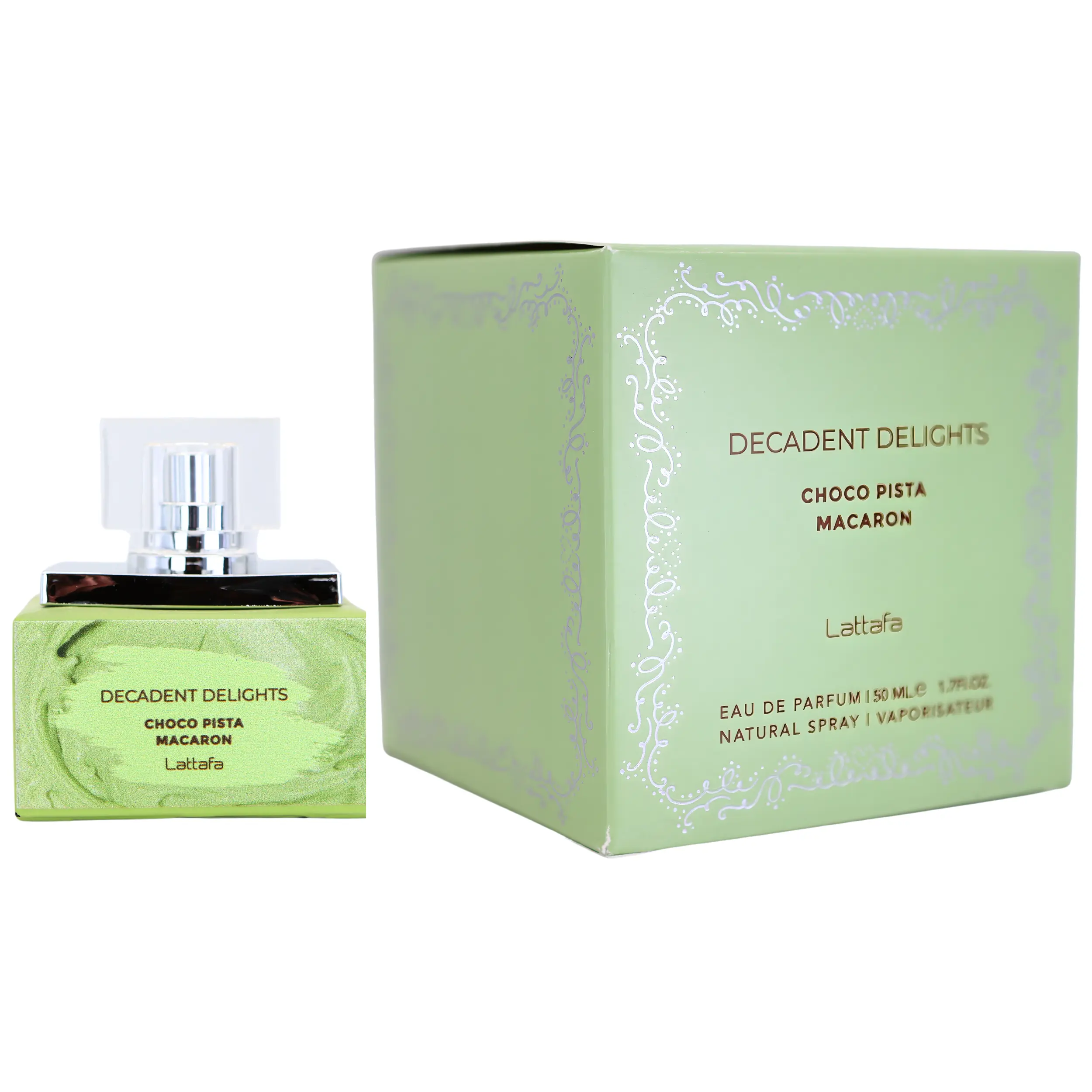 A deliciously indulgent scent inspired by the elegance of French patisserie. Choco Pista Macaron opens with creamy pistachio and rich chocolate, melting into a heart of sweet vanilla and almond. This fragrance is sweet, nutty, and utterly irresistible. It's a dessert you'll want to wear.