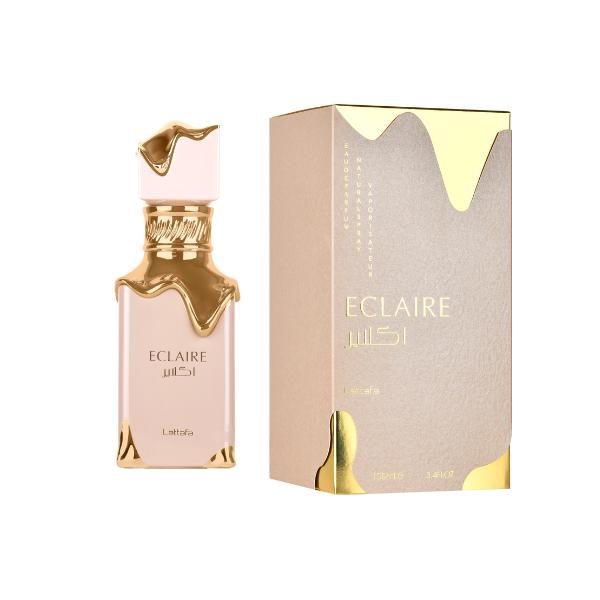 Lattafa Eclaire Eau de Parfum – a long-lasting unisex gourmand fragrance with caramel, vanilla, and amber for a sweet, addictive scent.