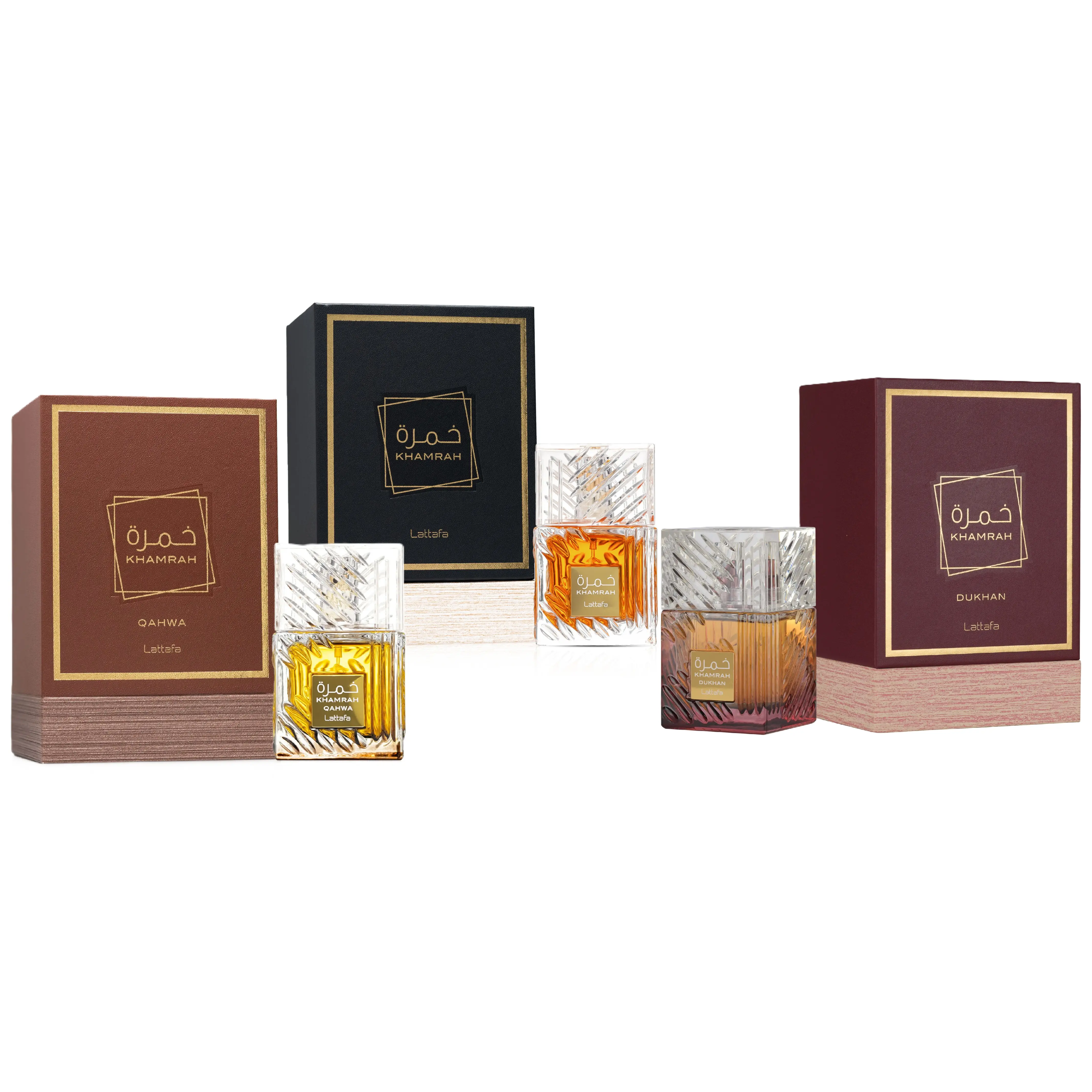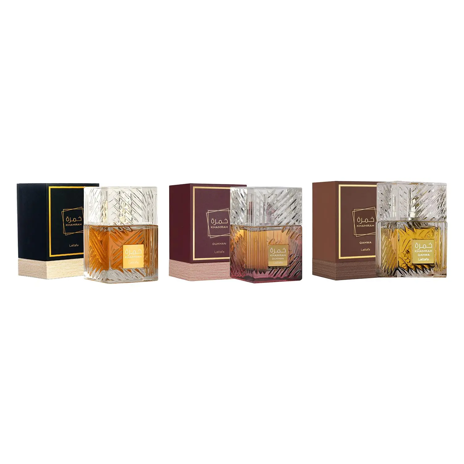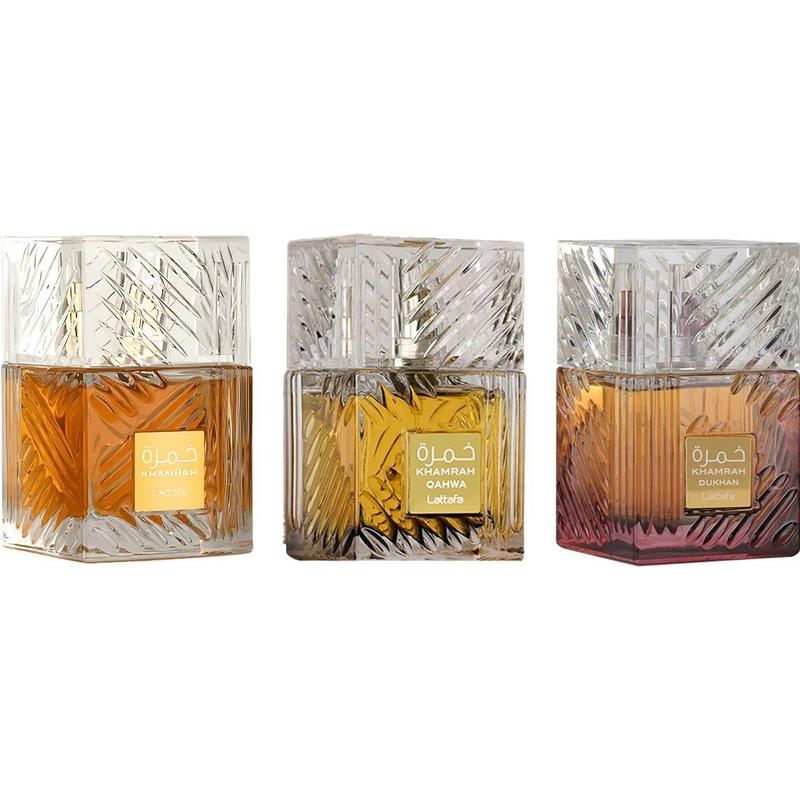 Discover the elegance of Lattafa Khamrah's exquisite fragrance collection with this 3-piece bundle set. Each bottle contains a unique blend of fragrance, perfect for enhancing your scent collection.