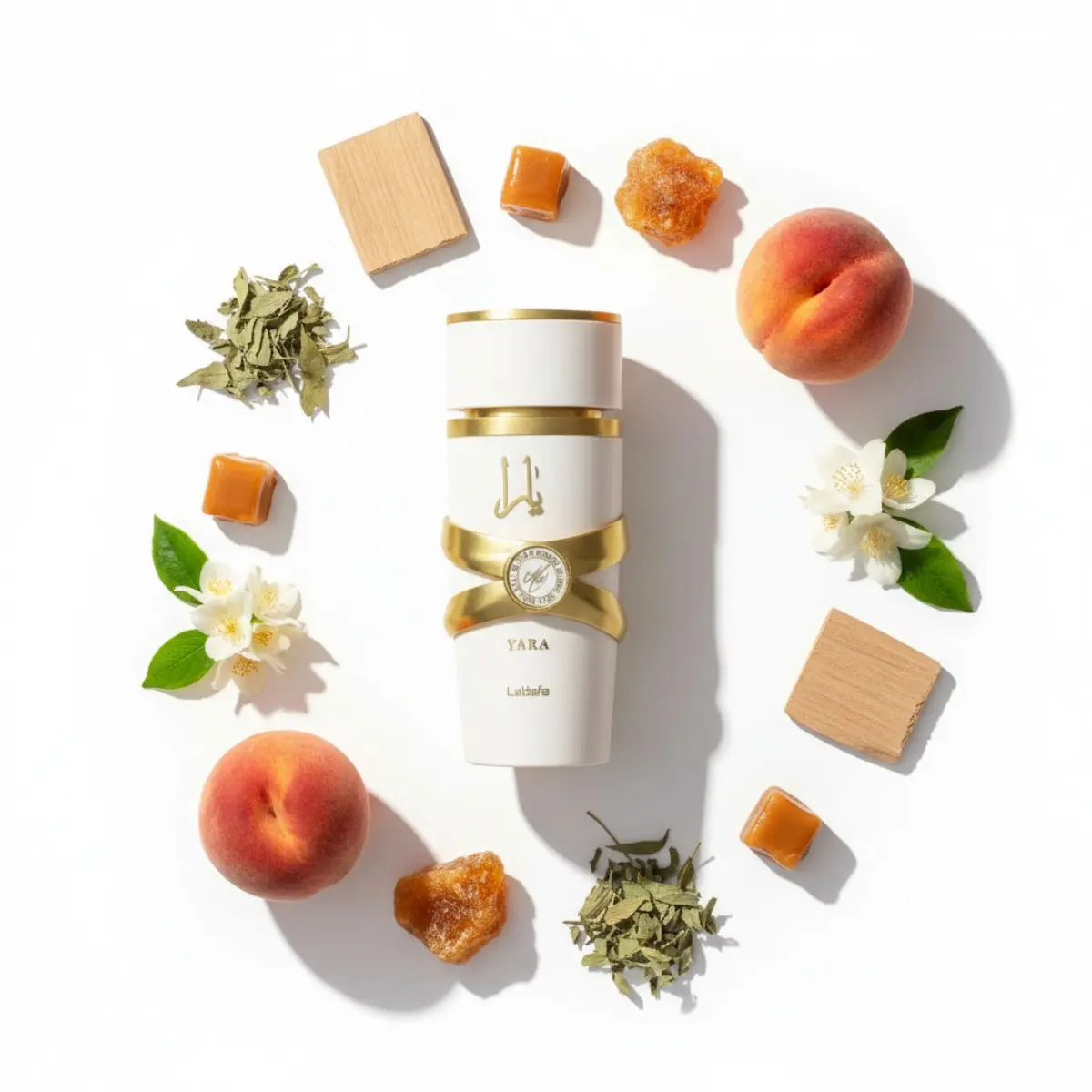 Top: Tangerine, Heliotrope, Orchid. Heart: Tropical Notes, Gourmand. Base: Vanilla, Sandalwood, Musk. Yara brings a sophisticated scent to this collection.