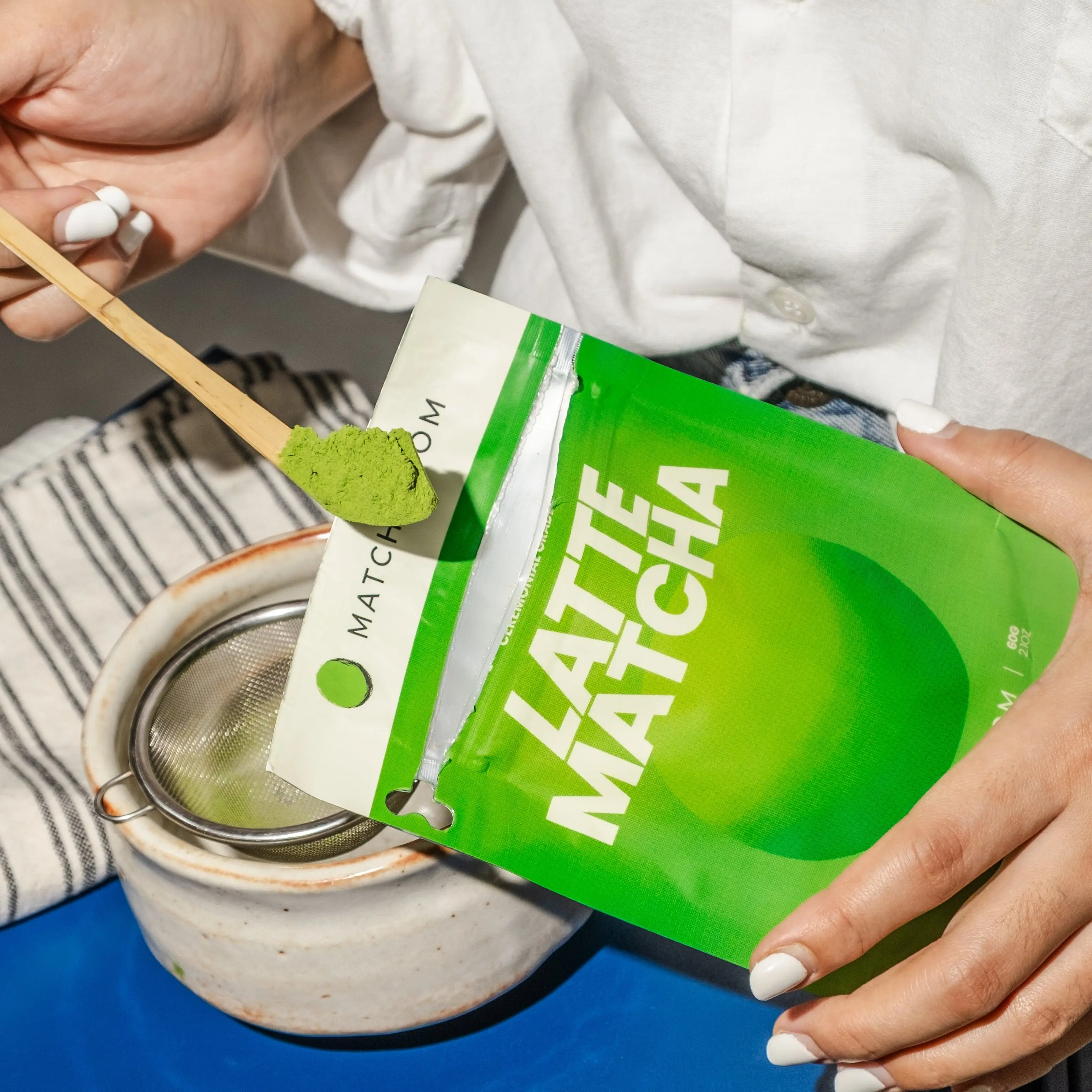 "Latte Matcha" is 100% pure, first-harvest matcha powder crafted by our Tea Master specifically for smooth, creamy lattes! Simply scoop, froth, and pour over your favorite milk/plant-milk!