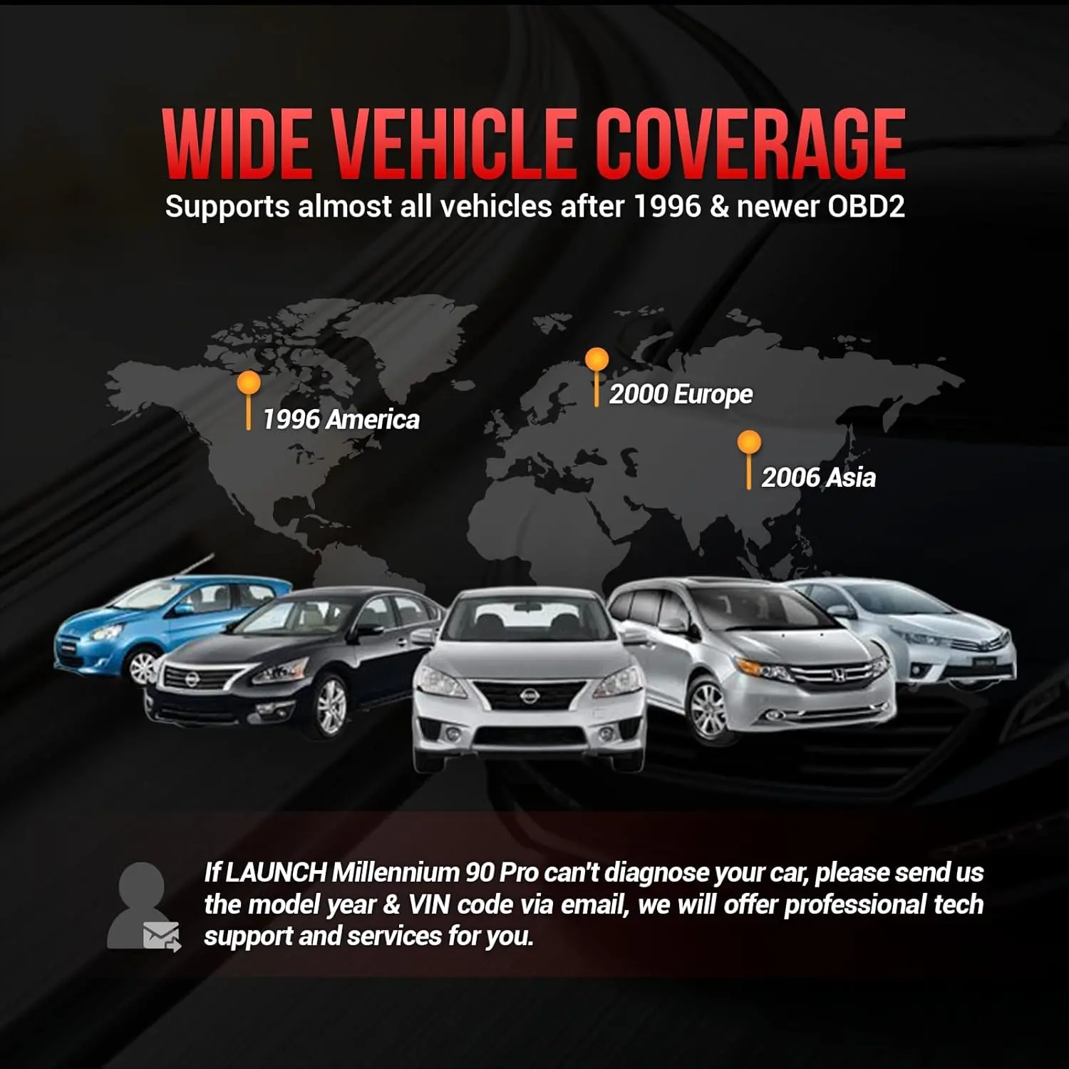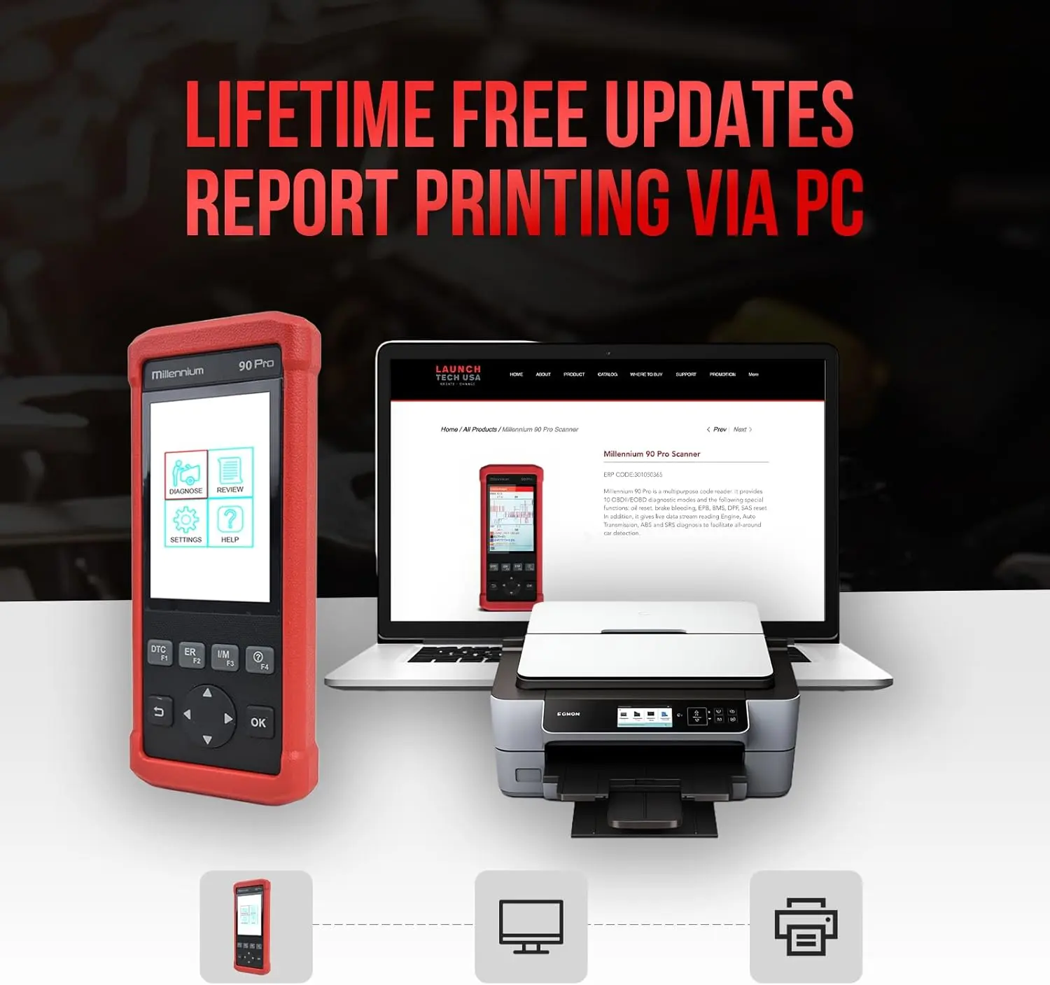 OBD2 Scanner LAUNCH Millennium 90 Pro Car Scanner, Full OBD2 Code Reader, Diagnostic Scan Tool for ABS SRS at Engine, with Oil EPB BMS ABS Bleeding SAS Reset Service Functions, Lifetime Free Update