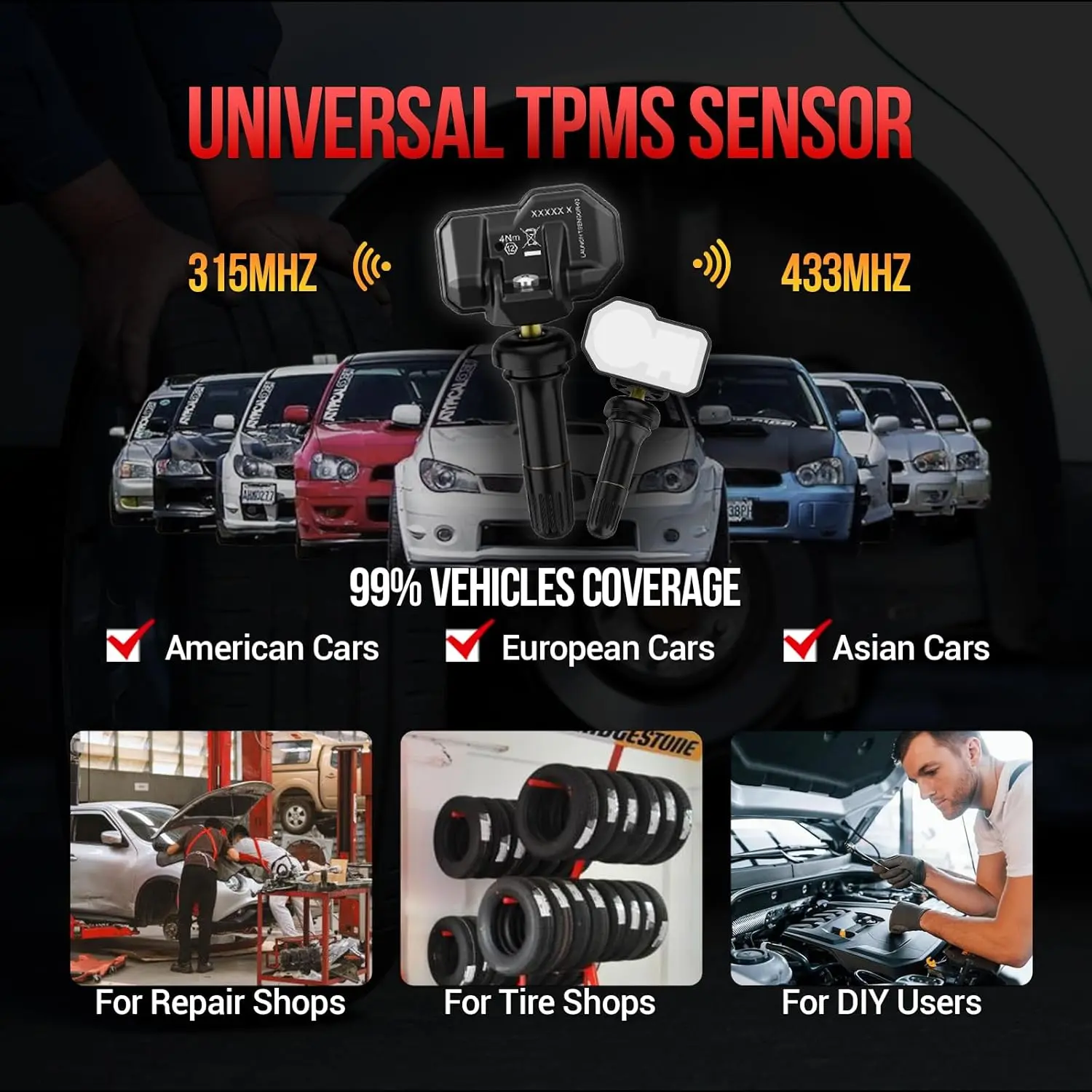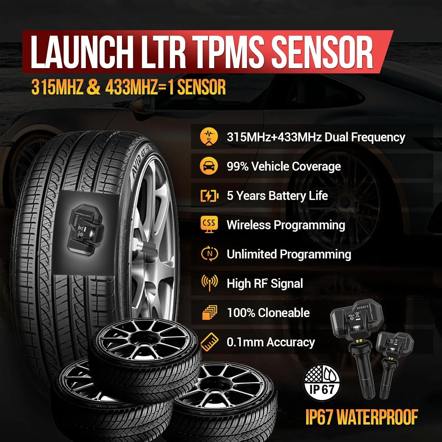 ·2 In 1 Dual Frequency TPMS Sensor】: LAUNCH LTR-01 RF TPMS Sensor is designed to combine both 315 MHz & 433 MHz applications in one sensor, which enables you to install it on any type of tire or vehicle. It is very convenient for professional mechanic and DIY users.