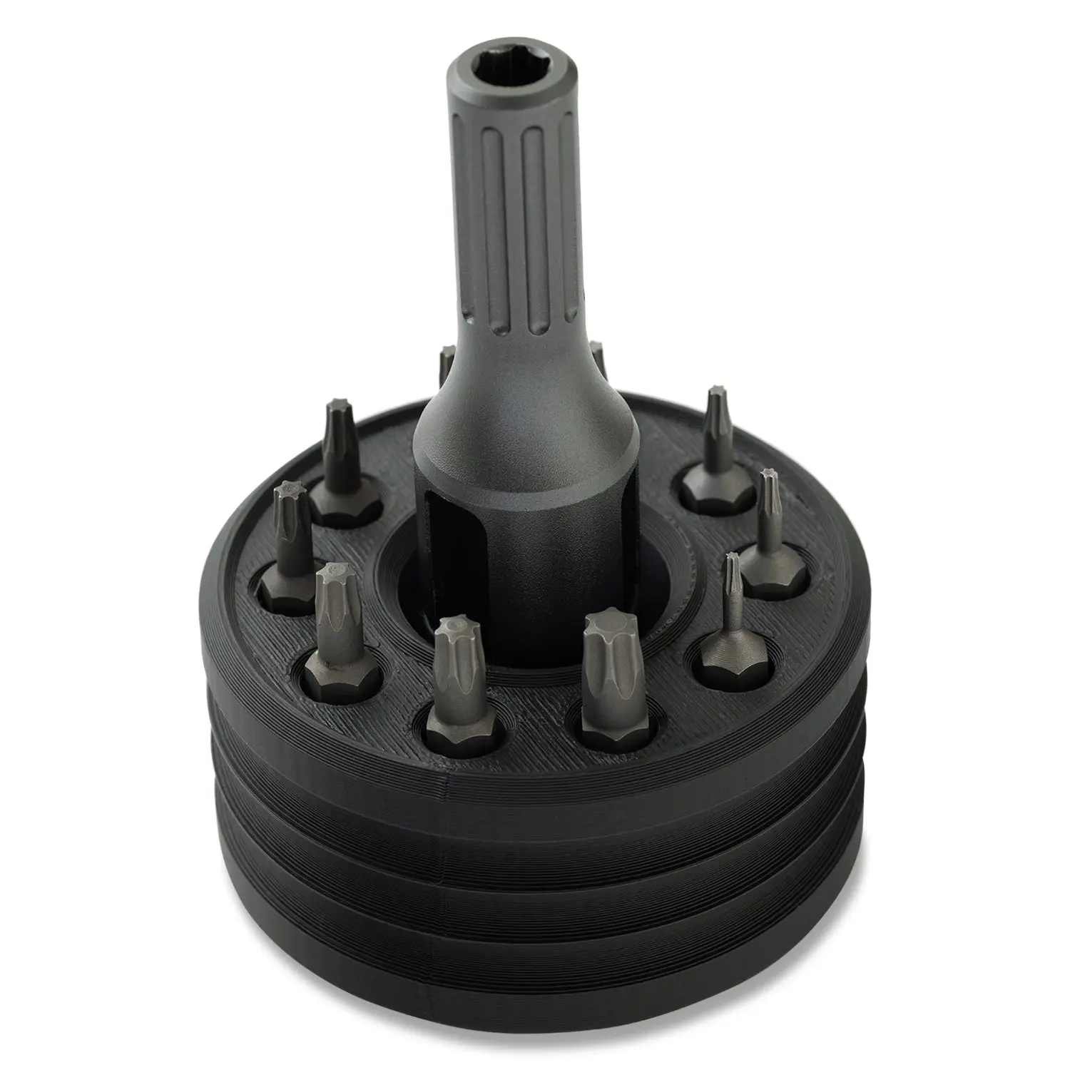 Perfect fit storage or display! 17 pockets for for knifes or tools and extra Bungie straps for screwdrivers and extras. Rolls up and secures with draw tight straps. Material doesn't scratch knives. Also has Velcro flap for adding patches.
