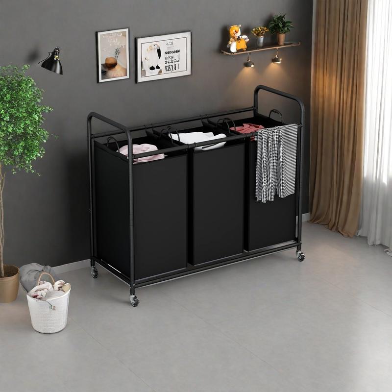 Each bag is detachable, equipped with metal handles for easy transport. Move it to the laundry room, bathroom, bedroom, or living room. The cart's roller design allows for free movement or locking, enhancing convenience.