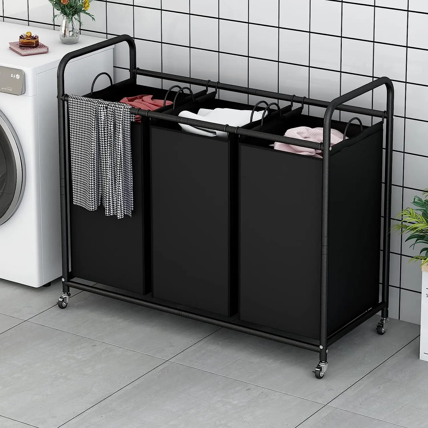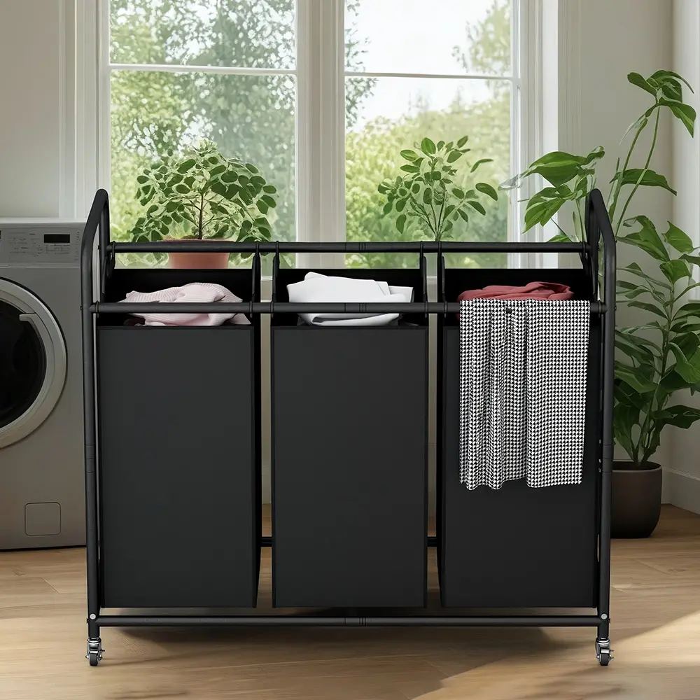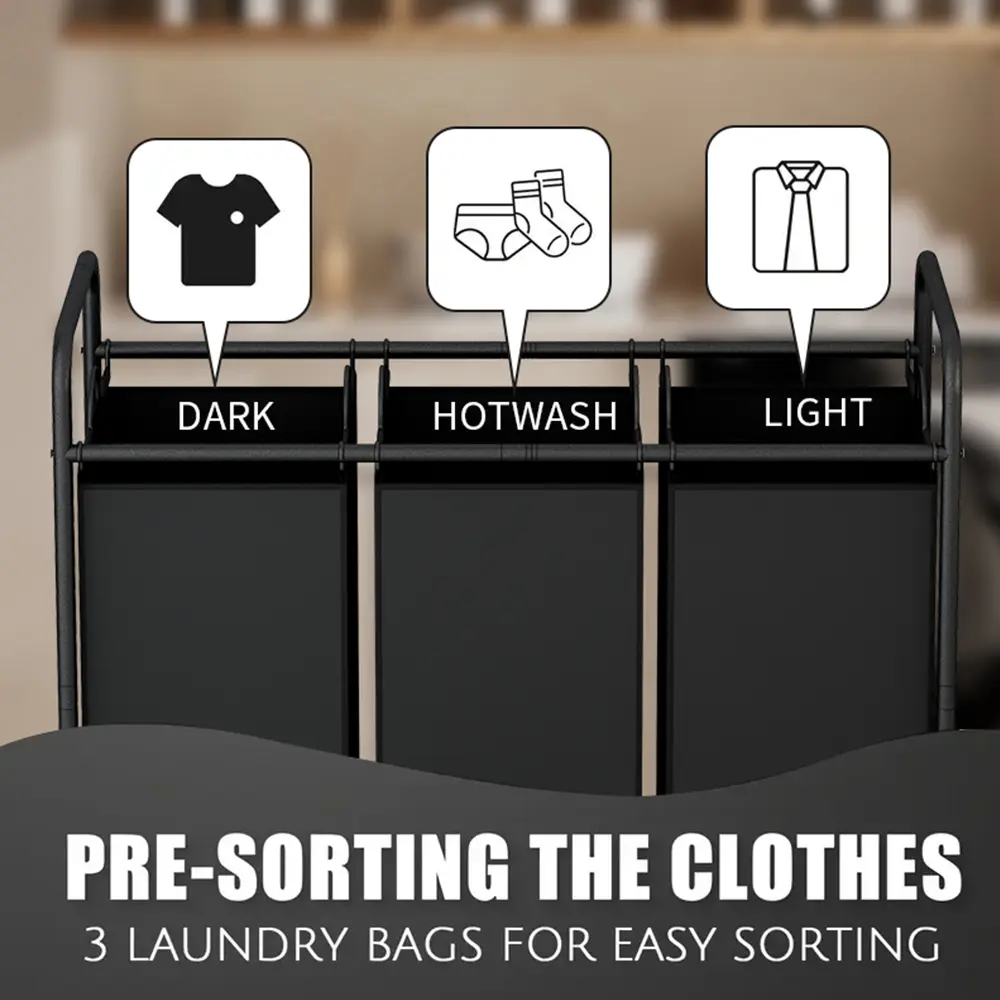 Each bag is detachable, with metal handles for easy transport. Move it to the laundry room, bathroom, bedroom, or living room. The cart's modular structure allows simple installation and disassembly. 🏠